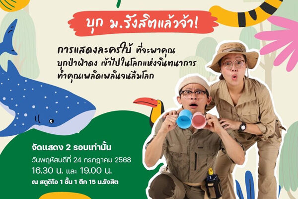 มหาวิทยาลัยรังสิต เชิญชวนผู้สนใจร่วมสัมผัสประสบการณ์สุดมหัศจรรย์กับการแสดงละครใบ้สุดสร้างสรรค์ “ทาเล่นโชว์ ตอน บุกป่าซาฟารี” ละครที่เดินสายจัดแสดงมาแล้วหลายประเทศ สร้างเสียงหัวเราะและแรงบันดาลใจให้กับผู้ชมทุกวัย พร้อมเปิดรอบการแสดงอย่างเป็นทางการในวันพฤหัสบดีที่ 24 กรกฎาคม 2568 โดยแบ่งการแสดงออกเป็น 2 รอบ ได้แก่ เวลา 16.30 น. และ 19.00 น. ณ สตูดิโอ 1