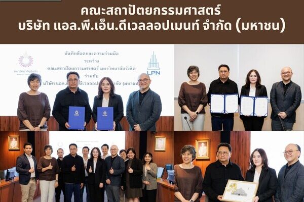 คณะสถาปัตยกรรมศาสตร์ มหาวิทยาลัยรังสิต ร่วมกับ บริษัท แอล.พี.เอ็น.ดีเวลลอปเมนท์ จำกัด (มหาชน) ร่วมลงนามบันทึกข้อตกลงผสานองค์ความรู้และนวัตกรรมระหว่างภาคการศึกษาและภาคธุรกิจ เพื่อพัฒนาบุคลากรรุ่นใหม่ที่มีทั้งความรู้เชิงวิชาการและทักษะปฏิบัติ ตลอดจนสนับสนุนการออกแบบและพัฒนาเมืองอย่างยั่งยืน สอดคล้องกับเป้าหมายของบริษัทในการสร้างที่อยู่อาศัยและชุมชนคุณภาพ ความร่วมมือครั้งนี้จะเปิดโอกาสให้เกิดโครงการวิจัย การแลกเปลี่ยนองค์ความรู้ การฝึกประสบการณ์วิชาชีพสำหรับนักศึกษา และกิจกรรมเพื่อสังคมที่สร้างประโยชน์ร่วมกันในระยะยาว อาทิ การจัดทำหลักสูตรระยะสั้นและระยะยาวเพื่อให้ความรู้ด้านวิชาการที่สำคัญต่อการประกอบวิชาชีพในอนาคตแก่นักศึกษา ร่วมพัฒนางานวิจัยโดยสนับสนุนการดำเนินงานวิจัยแก่นักศึกษา พร้อมส่งเสริมทักษะและประสบการณ์ในการทำงานเชิงปฏิบัติ เพื่อสร้างความรู้ ความเข้าใจและประสบการณ์การทำงานจริงแก่นักศึกษา โดยมี ผศ.ดร.อวิรุทธ์