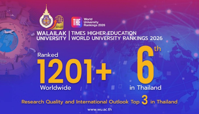 ม.วลัยลักษณ์ยืนหยัดเป็นมหาวิทยาลัยระดับโลก ครองอันดับ 1201+ ของโลก อันดับ 6 ของไทย THE World University Rankings 2026