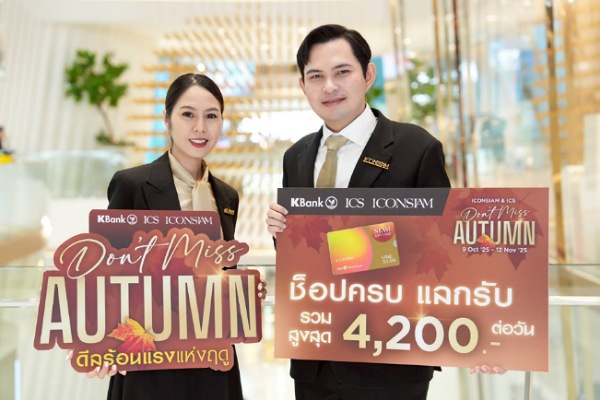 ไอคอนสยาม และไอซีเอส ตอกย้ำความเป็นจุดหมายปลายทางของนักท่องเที่ยวทั่วโลก ต้อนรับโค้งสุดท้ายปลายปีด้วยโปรโมชันในแคมเปญ “Don’t Miss Autumn!” เอาใจสายช้อปด้วยดีลร้อนแรงที่สุดแห่งฤดูกาล มอบสิทธิพิเศษให้สมาชิก ONESIAM ที่ใช้จ่ายผ่านบัตรเครดิตกสิกรไทย ครบตามยอดที่กำหนด รับทันทีของรางวัลสุดเอ็กซ์คลูซีฟ พร้อม Siam Gift Card มูลค่าสูงสุด 3,000 บาท รวมกว่า 3,600 รางวัล ตั้งแต่