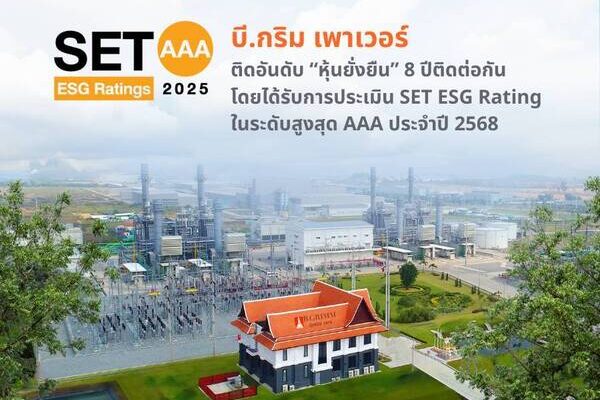 บริษัท บี.กริม เพาเวอร์ จำกัด (มหาชน) หรือ BGRIM ได้รับการประเมินด้านความยั่งยืนในระดับสูงสุด “AAA” จาก SET ESG Ratings ประจำปี 2568 ด้วยคะแนนสูงสุดในกลุ่มอุตสาหกรรมทรัพยากร (Resources) และได้รับคัดเลือกให้อยู่ในรายชื่อหุ้นยั่งยืนของตลาดหลักทรัพย์แห่งประเทศไทยต่อเนื่องเป็นปีที่ 8 สะท้อนถึงการดำเนินธุรกิจที่ให้ความสำคัญกับผู้มีส่วนได้ส่วนเสีย การบริหารจัดการความเสี่ยง และการสร้างคุณค่าในระยะยาว ความสำเร็จครั้งนี้สะท้อนการดำเนินธุรกิจภายใต้วิสัยทัศน์ “สร้างพลังให้กับสังคมโลกด้วยความโอบอ้อมอารี”