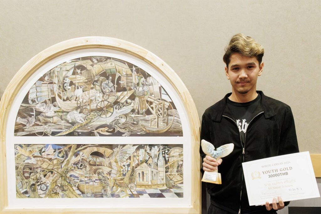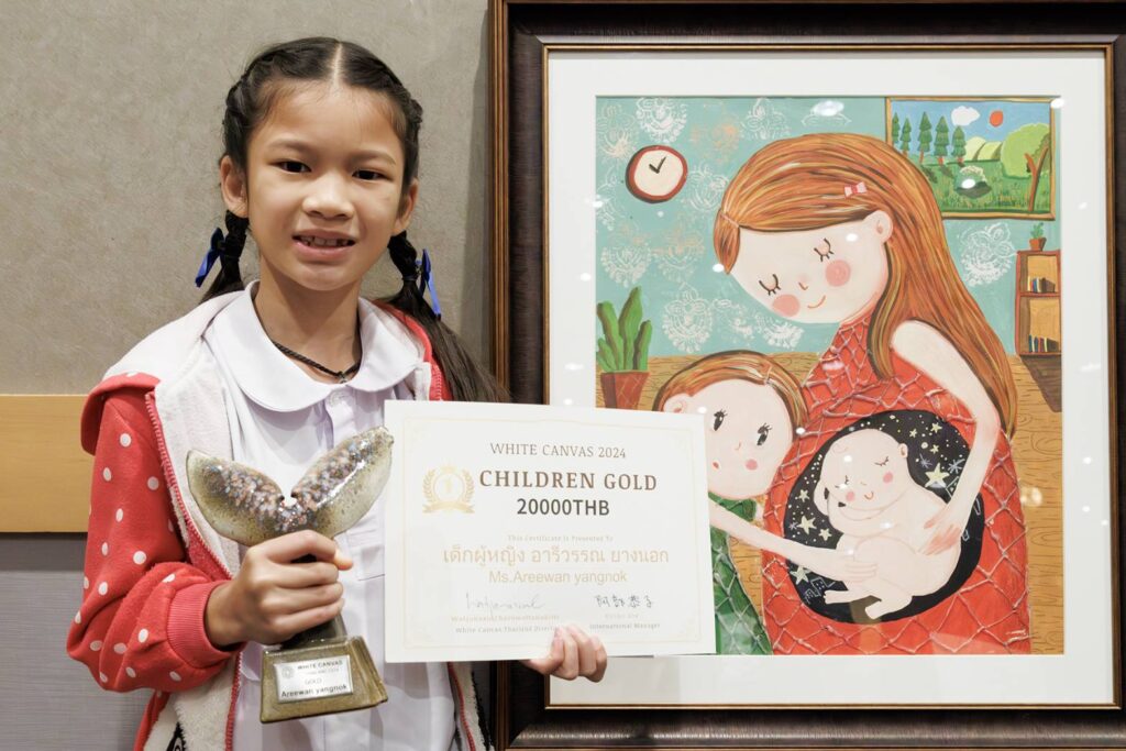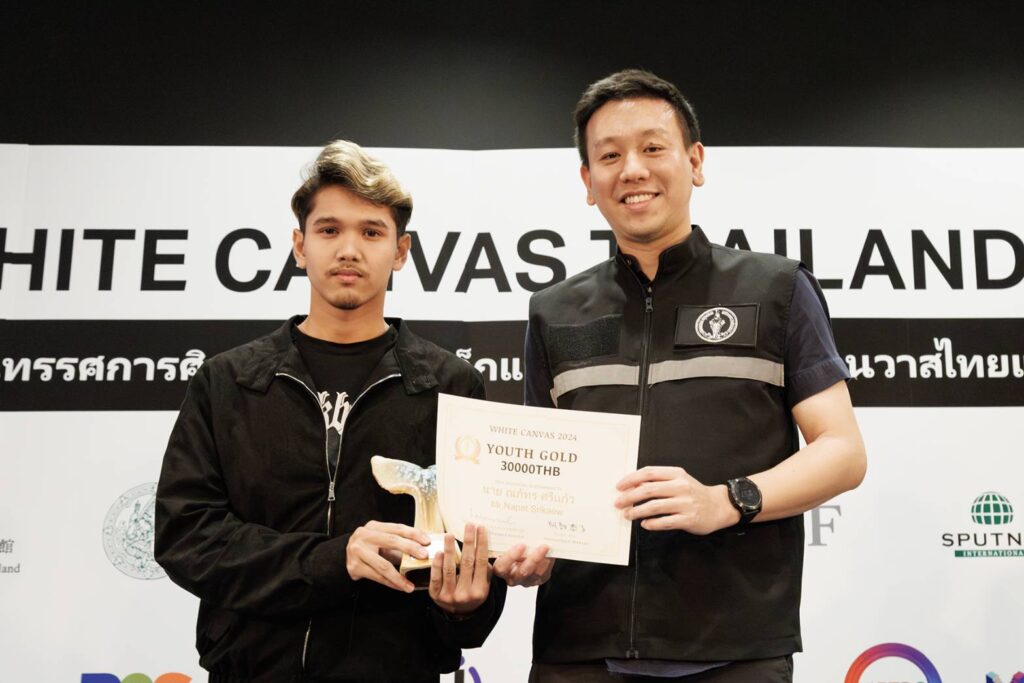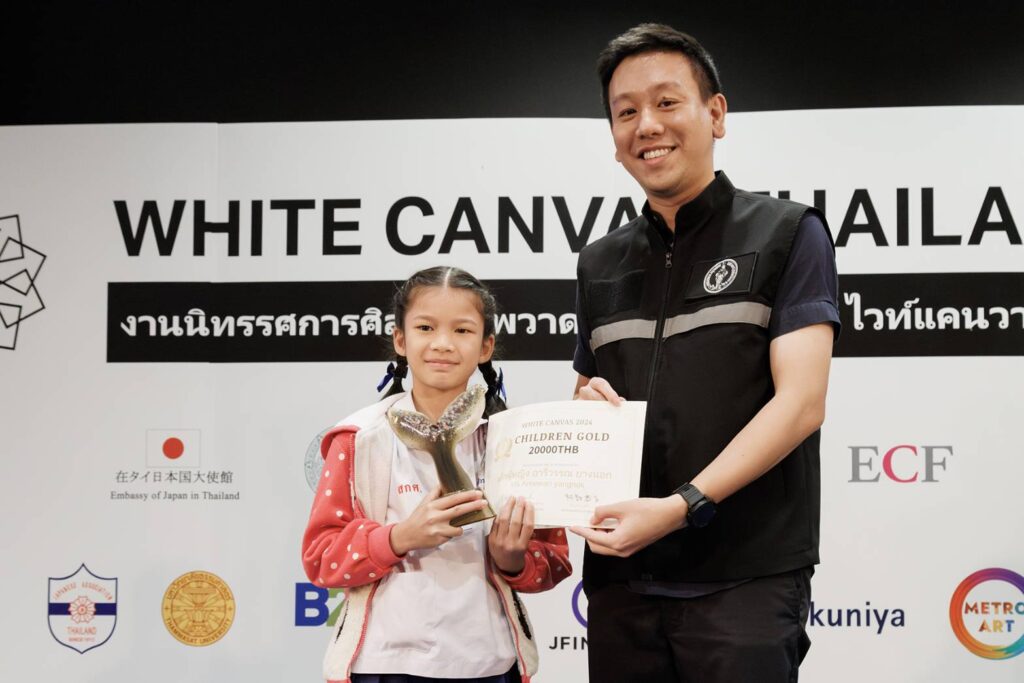 สำหรับการมอบรางวัลชนะเลิศ White Canvas Thailand 2024 ได้รับเกียรติ นายศานนท์ หวังสร้างบุญ รองผู้ว่าราชการกรุงเทพมหานคร พร้อมด้วย นายเจษฎา ชีวะวิชวาลกุม รองอธิบดีกรมศิลปากร กระทรวงวัฒนธรรม และนางมากิ คาวามูระ ที่ปรึกษาและผู้อำนวยการสำนักข่าวสารญี่ปุ่น สถานเอกอัครราชทูตญี่ปุ่นประจำประเทศไทย ร่วมมอบรางวัลและแสดงความยินดีแก่ผู้ชนะ ซึ่งผู้ชนะประเภทรุ่นเด็ก อายุ 7-14 ปี ได้แก่ ด.ญ.อารีวรรณ ยางนอก ชื่อภาพ ฝันดีนะเจ้าตัวเล็ก (Good night little one) และ ผู้ชนะประเภทรุ่นเยาวชน อายุ 15-24 ปี ได้แก่ นายณภัทร ศรีเเก้ว ชื่อภาพ วิกฤตยามมืดค่ำของสัตว์ (Nighttime Animal Crisis)