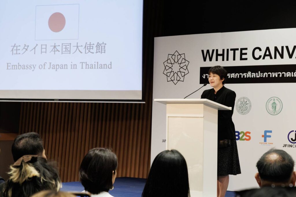 นางสาวเคียวโกะ อาเบะ ผู้แทนคณะกรรมการบริหาร White Canvas Thailand กล่าวว่า White Canvas เป็นการประกวดภาพวาดเด็กและเยาวชนที่ต้องการให้เป็นเวทีค้นหาดาวรุ่งศิลปินรุ่นใหม่และศิลปินรุ่นเยาว์ที่มีความสามารถ แต่ยังไม่ถูกค้นพบในประเทศแถบเอเชีย โดยการประกวดส่งเสริมให้ผู้เข้าประกวดเด็กและเยาวชนแสดงออกด้วยความคิดและการสร้างสรรค์งานศิลปะผ่านการวาดภาพและกระบวนการวาดภาพ นำเสนอแนวความคิดอย่างลึกซึ้งผ่านองค์ประกอบภาพ การใช้สี และวิธีการเล่าเรื่อง ซึ่งจะช่วยในการพัฒนาทักษะการสื่อสารและใช้รูปแบบศิลปะที่เป็นเอกลักษณ์ของตนสะท้อนตัวตนที่แท้จริง ปัจจุบันมีการจัดการประกวด White Canvas ขึ้นทั้งหมด 7 ประเทศ ได้แก่ ญี่ปุ่น ไทย ศรีลังกา กัมพูชาเมียนมาร์ ลาว และภูฏาน