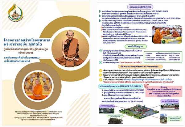 “และในการสร้างโรงพยาบาลพระอาจารย์มั่น ภูริทัตโต แห่งที่ 2 (ศูนย์พระธรรมวัชรญาณวิศิษฏ์เวชชานุกูลบ้านลึมบอง)นี้ จะทำให้ลดความแออัดของโรงพยาบาลและประชาชนในพื้นที่ใกล้เคียงสามารถเข้าถึงการดูแลรักษาได้สะดวกมากยิ่งขึ้น และโรงพยาบาลสามารถเพิ่มศักยภาพการให้บริการให้ครอบคลุมมากขึ้นตามสภาพปัญหาทางสุขภาพในปัจจุบัน”