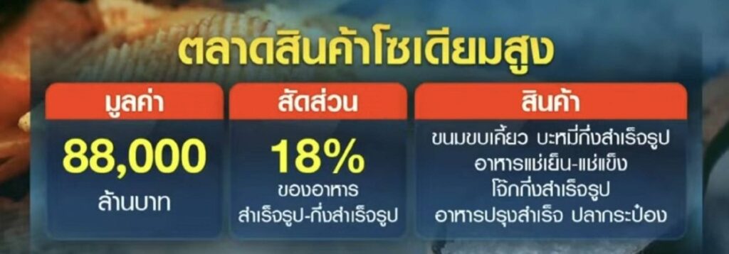 “จากข้อมูลพบว่าคนไทยได้รับโซเดียมจากการกินอาหาร 4,351.69 มิลลิกรัมต่อคนต่อวัน สูงกว่าเกณฑ์ที่องค์การอนามัยโลก (WHO) กำหนดอยู่ที่ไม่เกิน 2,000 มิลลิกรัมต่อวัน หรือเทียบเท่าเกลือ 1 ช้อนชา ที่สำคัญยังพบว่า คนไทยป่วยด้วยโรคที่สัมพันธ์กับการบริโภคโซเดียม เช่น โรคความดันโลหิตสูง ไต หัวใจและหลอดเลือดสมองกว่า 22 ล้านคน ซึ่งคำแนะนำขององค์การอนามัยโลกระบุว่า ภายในปี 2568 ไทยควรจะต้องทำให้ประชาชนลดการบริโภคเกลือและโซเดียมลง 30% โดยจะต้องปรับเปลี่ยนและพัฒนาผลิตภัณฑ์ลดเกลือและโซเดียม สร้างความรู้สร้างความตระหนักแก่ผู้บริโภค การปรับสภาพแวดล้อมที่เอื้อต่อการเลือกอาหารที่ดีต่อสุขภาพ และผลักดันให้เป็นรูปธรรมเพื่อบรรลุเป้าหมายประชาชนมีสุขภาพดี”