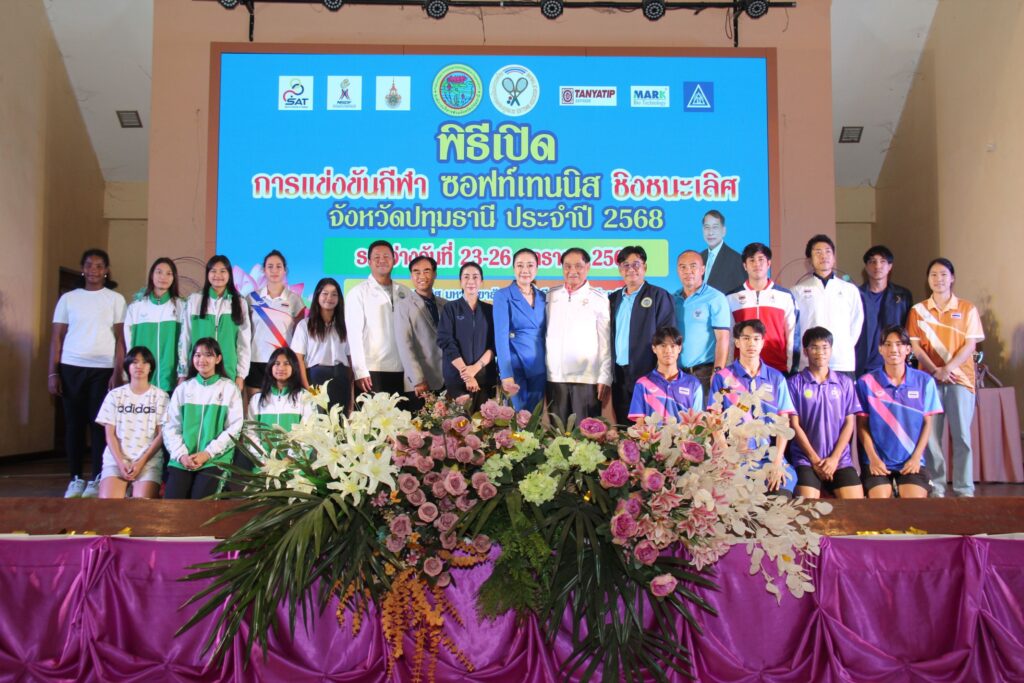 วันนี้ ( 24 ม.ค.68 ) ที่หอประชุมสงธนาพิทักษ์ มหาวิทยาลัยเทคโนโลยีราชมงคลธัญบุรี คลองหก จังหวัดปทุมธานี พลตำรวจโทคำรณวิทย์ ธูปกระจ่าง นายก อบจ.ปทุมธานี เป็นประธานในพิธีเปิดการแข่งขันกีฬาซอฟท์เทนนิสชิงชนะเลิศจังหวัดปทุมธานี ประจำปี 2568 โดยมีนายบรรลือชัย ผิวสานต์ นายกสมาคมกีฬาซอฟท์เทนนิสแห่งประเทศไทย กล่าวรายงาน ซึ่งมีวัตถุประสงค์พัฒนาทักษะ และประสบการณ์ในการแข่งขันกีฬาซอฟท์เทนนิส สร้างเสริมทัศนคติ คุณธรรม จริยธรรมของการเป็นนักกีฬาที่ดี ส่งเสริมกีฬาซอฟท์เทนนิสเป็นที่ยอมรับของบุคคลทั่วไป และเป็นการเก็บคะแนนสะสมเพื่อเตรียมนักกีฬาเข้าร่วมการแข่งขันในระดับนานาชาติ รวมถึงการบ่มเพาะนักกีฬาและประชาชนมีน้ำใจนักกีฬา รู้แพ้ รู้ชนะ รู้อภัย ยอมรับกฏ-กติกามารยาท รู้จักใช้เวลาว่างให้เกิดประโยชน์ห่างไกลยาเสพติด