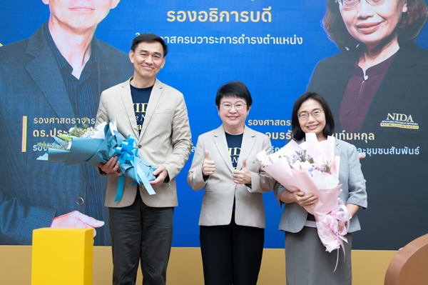 โดยภายในงานยังได้มีการมอบช่อดอกไม้แสดงความขอบคุณผู้บริหารสถาบันที่จะหมดวาระการดำรงตำแหน่งในเดือนกุมภาพันธ์นี้ ได้แก่ รองศาสตราจารย์ ดร.อมรรัตน์ อภินันท์มหกุล รองอธิการบดีฝ่ายวางแผนและชุมชนสัมพันธ์ และ รองศาสตราจารย์ ดร. ประพนธ์ สหพัฒนา รองอธิการบดีฝ่ายบริหารและเทคโนโลยีดิจิทัลพร้อมกันนี้ได้เปิดตัวรองอธิการบดีชุดใหม่ทั้ง 4 ฝ่าย พร้อมวิสัยทัศน์นำพานิด้าภายใต้ภารกิจสำคัญในแต่ละด้าน ซึ่งได้แก่