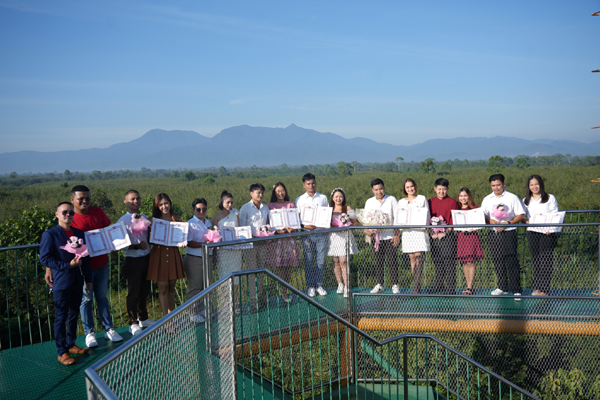 นางสาวเหมือนฝัน แสงกลัด และนายคมกริช ถิ่นพระบาท คู่รักชาย-หญิง เล่าถึงการได้เข้าร่วมงานครั้งนี้ไว้ว่า ติดตามข่าวสารกิจกรรมของมหาวิทยาลัยโดยตลอด จนมาได้เห็นกิจกรรมในวันนี้ เลยตัดสินใจเข้าร่วมกิจกรรมซึ่งเป็นการจดทะเบียนที่แปลกใหม่ แถมยังเป็นการจดทะเบียนบนหอชมฟ้าครั้งแรกของภาคใต้อีกด้วย