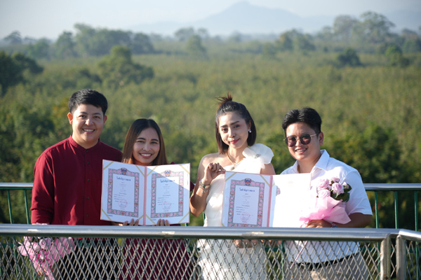 นายจตุรภัทร เล็กฟู และนายขจรศักดิ์ สัตย์จะยะกุล คู่รัก LGBTQ+ เล่าถึงความประทับใจที่ได้มาใช้ชีวิตคู่และมาร่วมจดทะเบียนสมรสในงานวันนี้ว่า รู้สึกดีใจที่ในปัจจุบันกฎหมายสมรสเท่าเทียม สามารถทำให้ตัวเองมาร่วมการจดทะเบียนในครั้งนี้ได้ ซึ่งที่นี่ก็มีบรรยากาศและวิวที่สวยงาม อีกทั้งยังมีผู้หลักผู้ใหญ่ มาร่วมแสดงความยินดี ถือเป็นความประทับใจสำหรับการร่วมงานในวันนี้