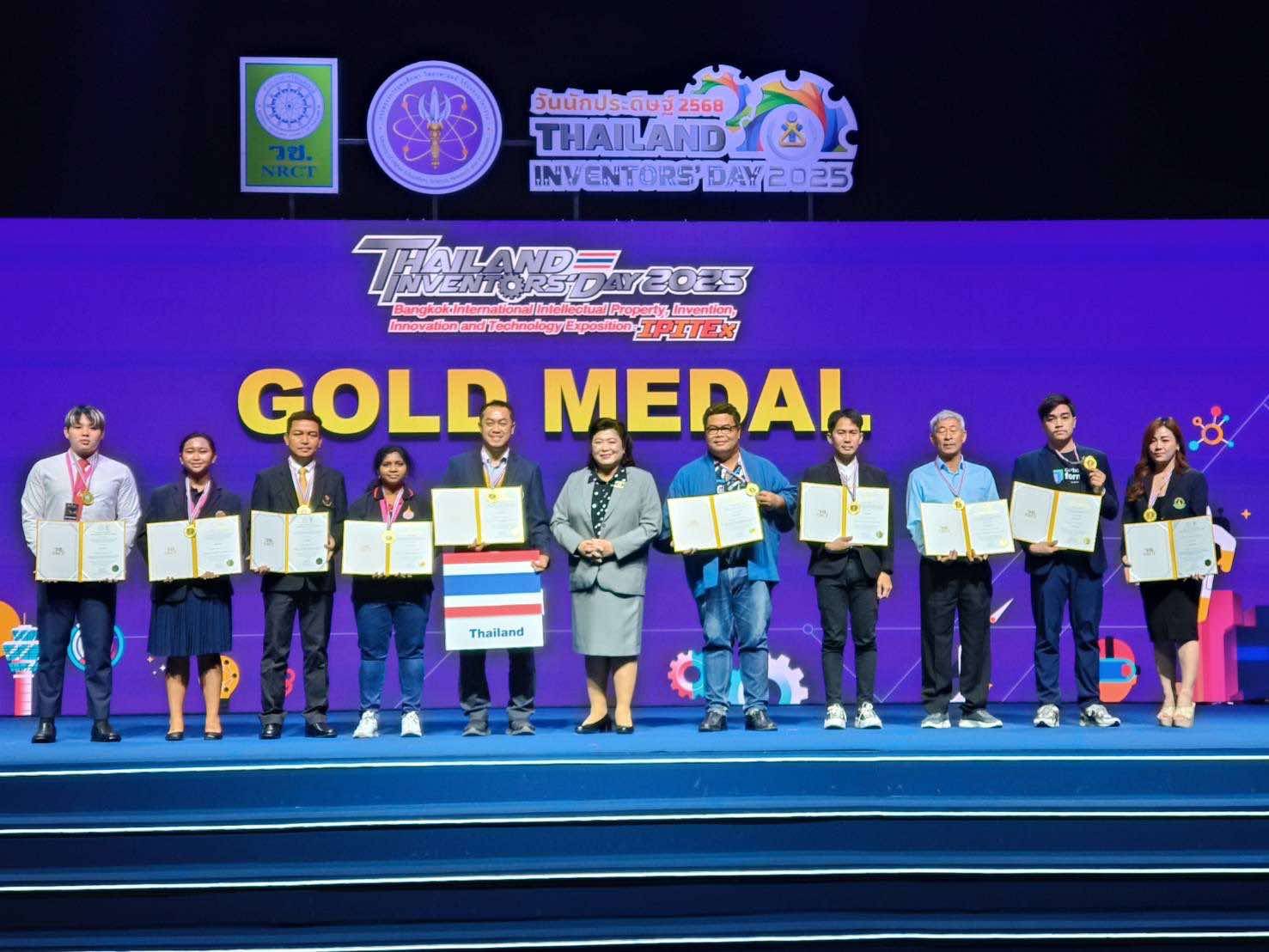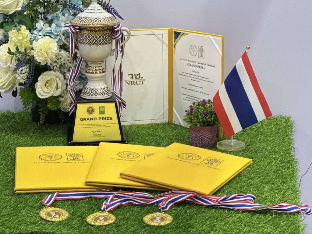 คว้ารางวัลชนะเลิศสูงสุด Best of the Best “Grand Prize 2025” ได้รับถ้วยรางวัลจากสำนักงานการวิจัยแห่งชาติ (วช.) เหรียญรางวัล พร้อมเกียรติบัตร จากเวทีมหกรรมสิ่งประดิษฐ์และนวัตกรรมนานาชาติ (IPITEx 2025) ภายในงานวันนักประดิษฐ์ 2568 (Thailand Inventors’ Day 2025) จัดโดยสำนักงานการวิจัยแห่งชาติ (วช.) กระทรวงการอุดมศึกษา วิทยาศาสตร์ วิจัยและนวัตกรรม ร่วมกับ 28 องค์กรนานาชาติและ 32 องค์กรไทยจัดขึ้น โดยมีทีมกว่า 700 ทีมจากทั่วโลกเข้าร่วม