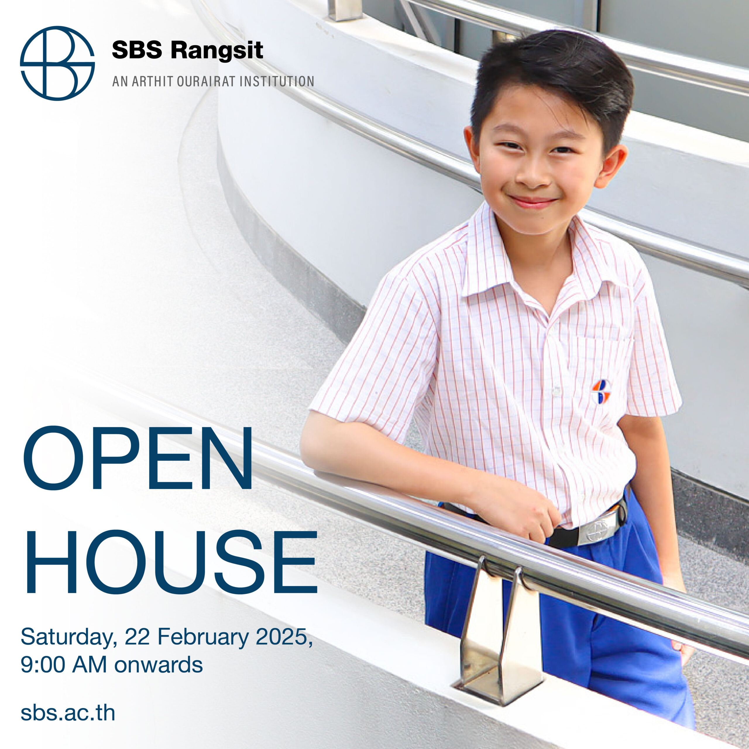 โรงเรียนสาธิตแห่งมหาวิทยาลัยรังสิต (SBS Rangsit) จัดกิจกรรม SBS Rangsit Open House 2025 “20 ปีแห่งความเป็นเลิศ” ในวันเสาร์ที่ 22 กุมภาพันธ์ 2568 เวลา 9:00 น. เป็นต้นไป ณ โรงเรียนสาธิตแห่งมหาวิทยาลัยรังสิต หมู่บ้านเมืองเอก ปทุมธานี ภายในงานพบกับการแสดงความสามารถของนักเรียน ผลงานทางวิชาการ และนวัตกรรมการเรียนรู้ที่สะท้อนความเป็นเลิศทางการศึกษา สำหรับผู้ที่สนใจสามารถสอบถามรายละเอียดได้ที่ โรงเรียนสาธิตแห่งมหาวิทยาลัยรังสิต (SBS Rangsit) โทร. 083 842 1632 หรือ อีเมล์ info@sbs.ac.th หรือ Line: sbs_rangsit