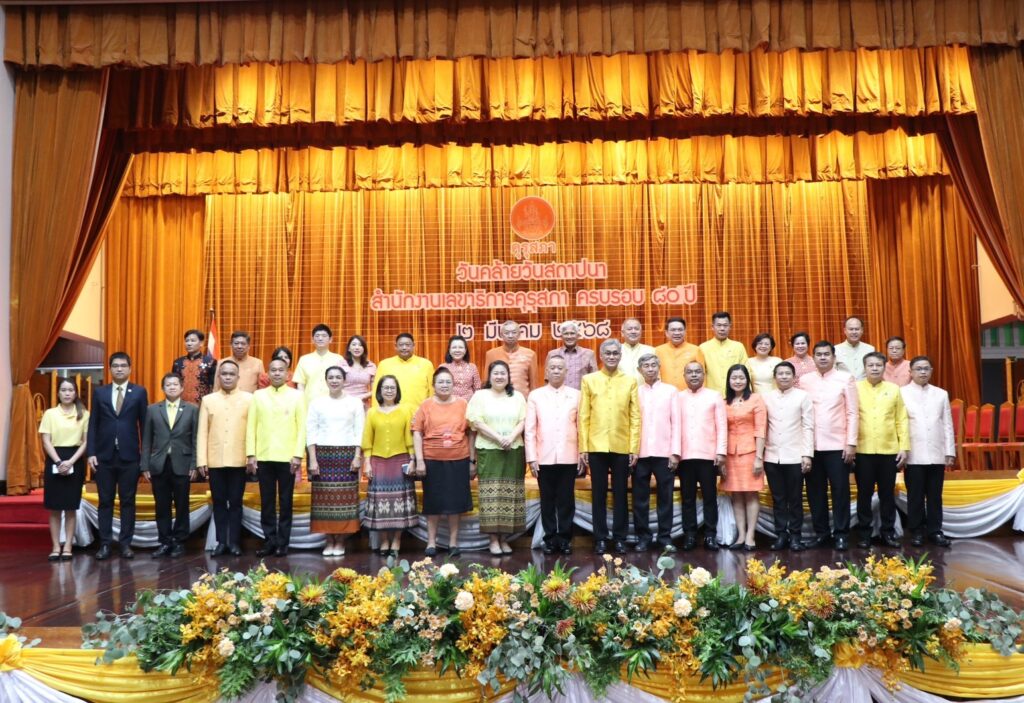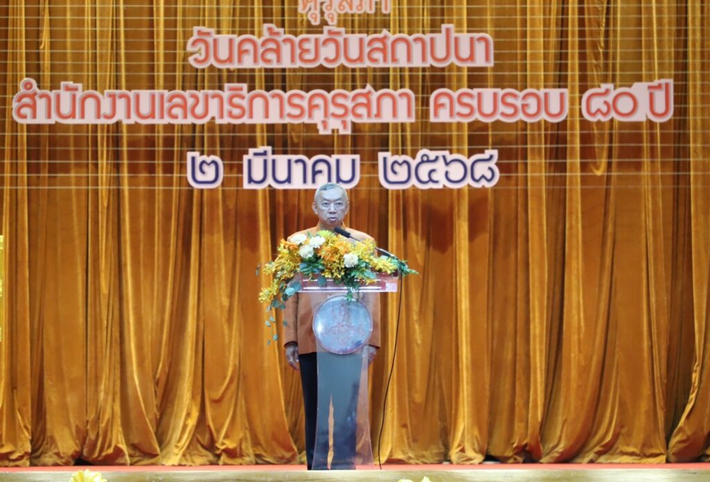 วันนี้ (2 มีนาคม 2568) สำนักงานเลขาธิการคุรุสภา จัดงานวันคล้ายวันสถาปนาสำนักงานเลขาธิการคุรุสภา ครบรอบ 80 ปี โดยมี พลตำรวจเอก เพิ่มพูน ชิดชอบ รัฐมนตรีว่าการกระทรวงศึกษาธิการ เป็นประธานในพิธี มี ผศ.ดร.อมลวรรณ วีระธรรมโม เลขาธิการคุรุสภา ผู้บริหารสำนักงานเลขาธิการคุรุสภาให้การต้อนรับพร้อมด้วย คณะกรรมการคุรุสภา คณะกรรมการมาตรฐานวิชาชีพ ผู้บริหารระดับสูงของกระทรวงศึกษาธิการ ผู้ได้รับรางวัล แขกผู้มีเกียรติและพนักงานเจ้าหน้าที่ของสำนักงานเลขาธิการคุรุสภา ทั้งส่วนกลางและส่วนภูมิภาค เข้าร่วมงานกว่า 400 คน ณ ห้องประชุมบุณยเกตุ อาคารหอประชุมคุรุสภา สำนักงานเลขาธิการคุรุสภา กระทรวงศึกษาธิการ