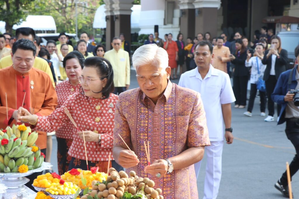 ในช่วงเช้า พลตำรวจเอก เพิ่มพูน ชิดชอบ รมว.ศธ. เป็นประธานพิธีบวงสรวงองค์พระพฤหัสบดี