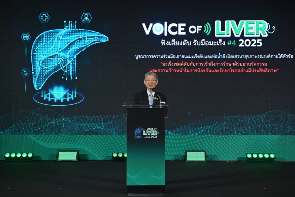 “งาน “Voice of Liver ฟังเสียงตับ รับมือมะเร็งตับ” ในครั้งนี้ เป็นอีกหนึ่งความร่วมมือที่จะช่วยเสริมสร้างการเปลี่ยนแปลงที่สำคัญในด้านสาธารณสุข โดยเฉพาะการให้ผู้ป่วยมะเร็งตับได้เข้าถึงการรักษาด้วยยานวัตกรรมและการดูแลที่เท่าเทียมกัน เพราะทุกชีวิตมีคุณค่า” ปลัดกระทรวงสาธารณสุขกล่าว