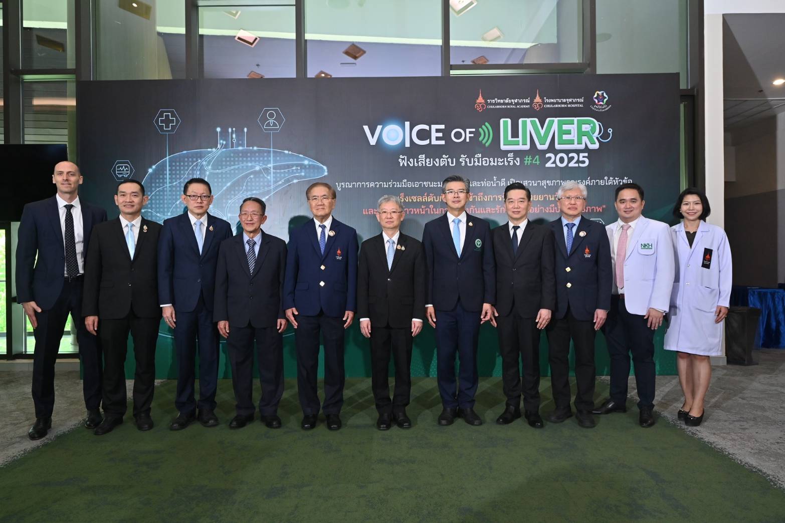 ราชวิทยาลัยจุฬาภรณ์ ร่วมกับมูลนิธิมะเร็งตับ ร่วมกันจัดงาน Voice of Liver ฟังเสียงตับ รับมือมะเร็ง ครั้งที่ 4 บูรณาการความร่วมมือเอาชนะมะเร็งตับ รวมพลัง ฟังเสียงผู้ป่วย ช่วยสร้างโอกาสในการรักษาและคุณภาพชีวิตที่ดีขึ้น สำหรับผู้ป่วยมะเร็งตับระยะลุกลาม เนื่องในโอกาสวันมะเร็งโลก 2568 โดยมี ศ.เกียรติคุณ นพ.รัชตะ รัชตะนาวิน รักษาการรองเลขาธิการราชวิทยาลัยจุฬาภรณ์ นพ.โอภาส การย์กวินพงศ์ ปลัดกระทรวงสาธารณสุข นพ.ทวีศิลป์ วิษณุโยธิน อธิบดีกรมการแพทย์ รศ.นพ.สุรศักดิ์ ลีลาอุดมลิปิ รักษาการผู้อำนวยการโรงพยาบาลจุฬาภรณ์ นพ.จเด็จ ธรรมธัชอารี เลขาธิการสำนักงานหลักประกันสุขภาพแห่งชาติ (สปสช.) ร.อ.นพ.สมชาย ธนะสิทธิชัย ผู้อำนวยการสถาบันมะเร็งแห่งชาติ นพ.จำรัส พงษ์พิศ อายุรแพทย์โรคระบบทางเดินอาหารและตับ รพ.หนองคาย และตัวแทนมูลนิธิรักษ์ตับ นางสาวศิรินทิพย์ ขัติยะกาญจน์ ประธานมูลนิธิเครือข่ายมะเร็ง พร้อมภาคีเครือข่ายร่วมเปิดงานเพื่อรณรงค์สร้างความตระหนักรู้ และร่วมขับเคลื่อนให้คนไทยมีสิทธิ์ขั้นพื้นฐานในการรักษาโรคมะเร็งตับด้วยยานวัตกรรม