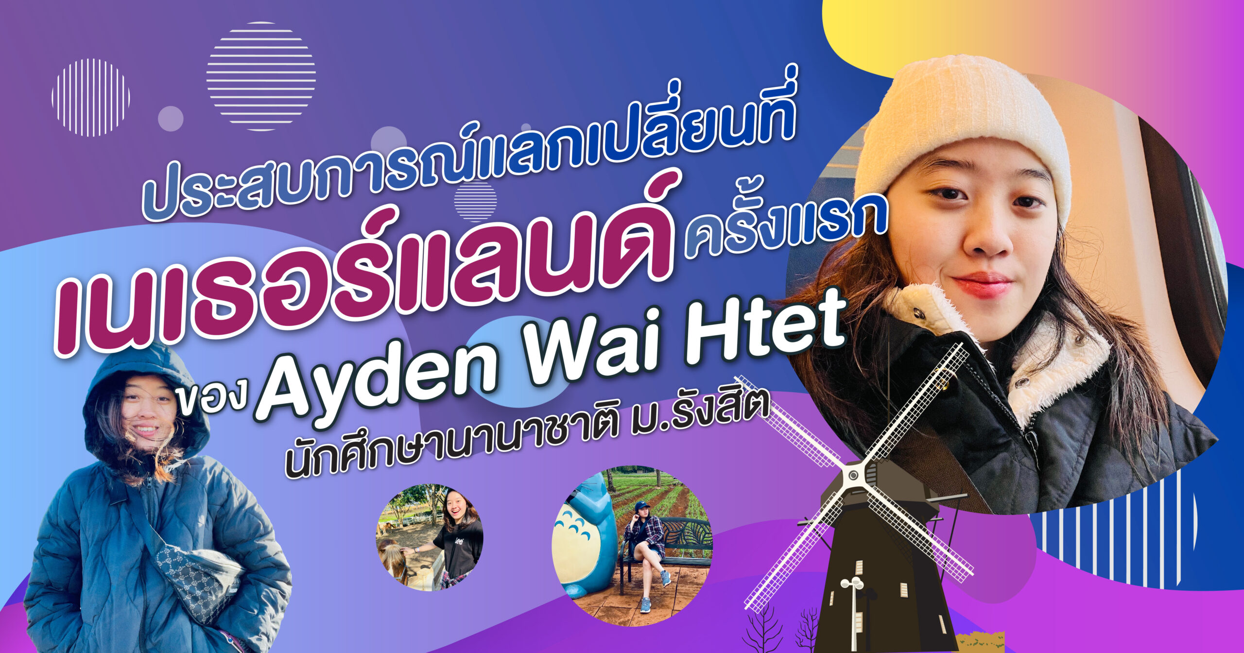 Ayden Wai Htet นักศึกษาชั้นปีที่ 2 สาขาวิชา International Business วิทยาลัยนานาชาติ มหาวิทยาลัยรังสิต บอกกับเราว่า เธอเคยเดินทางท่องเที่ยวไปหลายแห่ง และที่ผ่านมาเธอยังไม่เคยได้มีโอกาสไปประเทศฝั่งยุโรปเลย ดังนั้นเธอจึงรีบคว้าโอกาสไว้ทันทีที่ได้ยินเกี่ยวกับโครงการแลกเปลี่ยนที่ HZ University of Applied Sciences ในประเทศเนเธอร์แลนด์ ซึ่งประเทศนี้ก็เปรียบเสมือนศูนย์กลางของทวีป เธอรู้สึกตื่นเต้นมากๆ และมองว่านี่คือเหตุผลที่เพียงพอสำหรับการแลกเปลี่ยนในครั้งนี้ เพื่อไปสำรวจโลกอีกด้านหนึ่ง สิ่งเหล่านี้เป็นจุดเริ่มต้นที่ดีในการสำรวจทวีปใหม่ๆ นอกจากนี้เธอยังได้รับทุนการศึกษามากถึง 1,500 ยูโร ซึ่งทำให้เธอสามารถใช้ชีวิตมหาลัยในต่างประเทศได้อย่างมั่นคง
