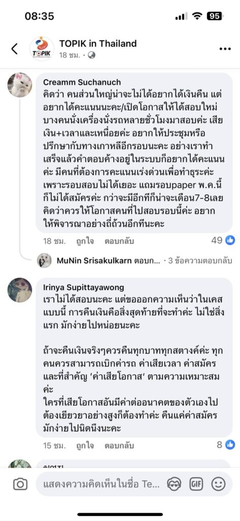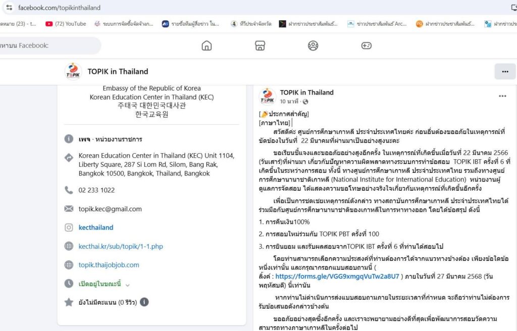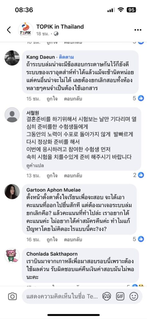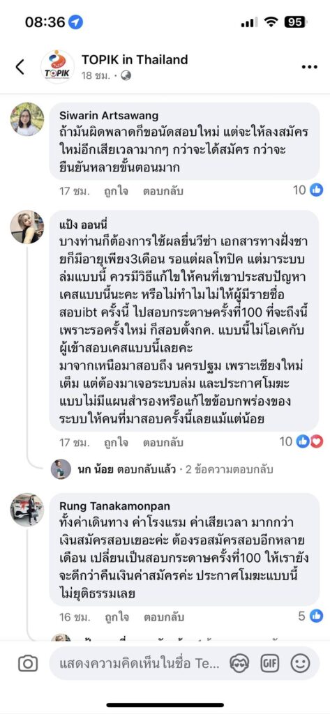เกิดปรากฏการณ์ระบบคอมพิวเตอร์ล่ม ทั่วสนามสอบ Topik1 และ Topik2 ประจำศูนย์การศึกษาเกาหลี ประจำประเทศไทย จำนวน 3 แห่ง ทั่วประเทศ เผยมีผู้ตกค้างไม่ได้สอบวัดผลในครั้งนี้กว่า 530 คน ในการสอบวัดระดับทางภาษาเกาหลี(Topik PBT) ประจำปี 2568 ครั้งที่ 1 เมื่อวันที่ 22 มีนาคม 2568 ที่ผ่านมา เผยศูนย์การศึกษาเกาหลี บอกปัดยื่นข้อสรุป 3 ประการ คือ 1. การคืนเงิน100% 2. การสอบใหม่ร่วมกับ TOPIK PBT ครั้งที่ 100 3. การยินยอม และรับผลสอบจาก TOPIK IBT ครั้งที่ 6 ที่ท่านที่ได้สอบไปสำเร็จและสอบผ่าน ด้านได้รับผลกระทบประกอบด้วยผู้เข้าสมัครสอบและผู้ปกครองวอน ไม่ยุติธรรม เพราะต้องการเสียค่าเครื่องบิน ค่ารถ ค่าน้ำมัน ค่าอาหาร เป็นต้น