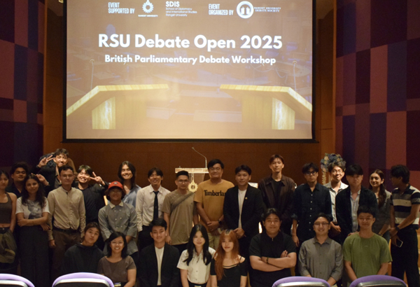 Rangsit University Debate Society คณะการทูตและการต่างประเทศ มหาวิทยาลัยรังสิต เปิดเวทีโต้วาที RSU Debate Society Opening 2025 และกิจกรรม British Parliamentary Debate Workshop โดยได้รับความสนใจจากนักศึกษาที่เป็นนักโต้วาที และนักพูดในที่สาธารณะ ร่วมแบ่งปันประสบการณ์ นอกจากนี้ นักศึกษาในชมรมยังได้เสริมสร้างทักษะการพูดในที่สาธารณะ และยังได้สร้างเครือข่ายระหว่างกัน ณ ห้องออดิทอเรียม 11-101 อาคารรัตนคุณากร (อาคาร 11) มหาวิทยาลัยรังสิต
