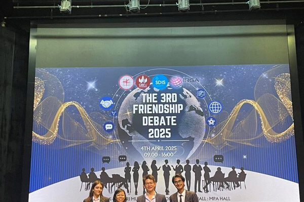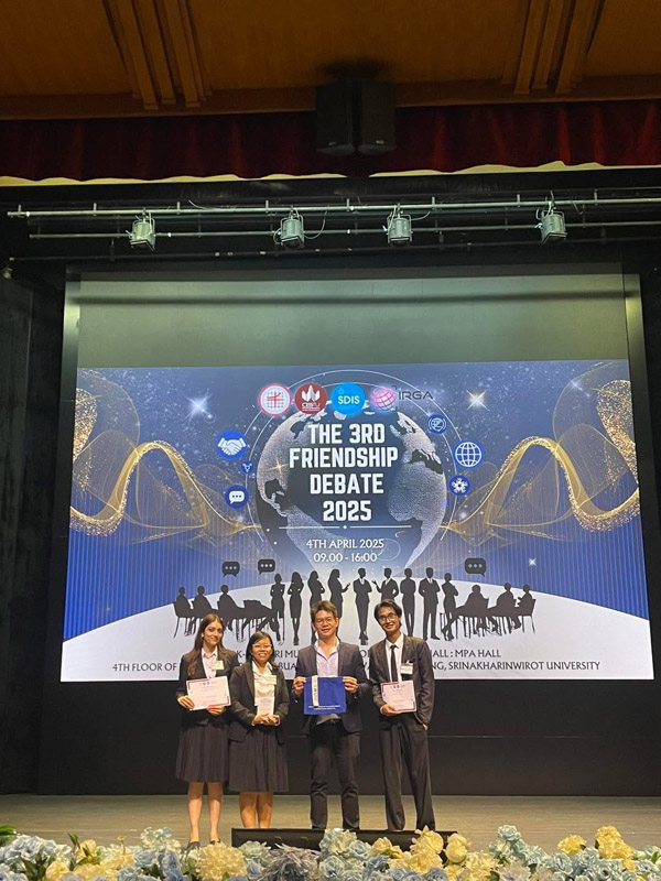 ทีมดีเบต นักศึกษาจากคณะการทูตและการต่างประเทศ (SDIS) มหาวิทยาลัยรังสิต ได้รับรางวัลชนะเลิศการแข่งขันโต้วาทีสานสัมพันธ์ 4 มหาวิทยาลัย (หลักสูตรนานาชาติ) ครั้งที่ 3 ประจำปี 2568 อีกครั้งติดต่อกันเป็นปีที่ 3 ในปีนี้มหาวิทยาลัยศรีนครินทรวิโรฒ ประสานมิตร เป็นเจ้าภาพจัดการแข่งขัน โดยมีนักศึกษาจาก 4 มหาวิทยาลัยเข้าร่วมได้แก่ คณะการทูตและการต่างประเทศ (SDIS) มหาวิทยาลัยรังสิต วิทยาลัยสหวิทยาการ (PPE) มหาวิทยาลัยธรรมศาสตร์ วิทยาลัยนานาชาติเพื่อศึกษาความยั่งยืน (SWUIC) มหาวิทยาลัยศรีนครินทรวิโรฒ และวิทยาลัยนานาชาติ (MUIC) มหาวิทยาลัยมหิดล