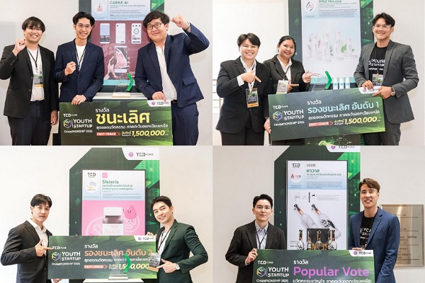 สำหรับผลการแข่งขันสุดยอดนวัตกรรม TED Youth Startup Championship 2025 ภาคตะวันออกเฉียงเหนือ ได้แก่ รางวัลชนะเลิศ ทีม CARNE AI: ระบบปัญญาประดิษฐ์เพื่อประเมินเกรดเนื้อวัวเนื้อพรีเมียม จาก TED Fellow หน่วยวิจัยนโยบายวิทยาศาสตร์ เทคโนโลยี และนวัตกรรม มหาวิทยาลัยเทคโนโลยีสุรนารี, รางวัลรองชนะเลิศอันดับ 1 ทีม Mild Mousse: ผลิตภัณฑ์ทำความสะอาดเส้นผมและหนังศรีษะแบบไม่ใช้น้ำด้วยไมเซลลาเทคโนโลยี จาก TED Fellow โครงการอุทยานวิทยาศาสตร์ มหาวิทยาลัยอุบลราชธานี, รางวัลรองชนะเลิศอันดับ 2 ทีม Sisteris: สมุนไพรไทยผสมโพรไบโอติกส์ สำหรับบำรุงระบบภายในผู้หญิง จาก TED Fellow อุทยานวิทยาศาสตร์ มหาวิทยาลัยขอนแก่น และรางวัล Popular Vote ทีม ซาวาส: สุราชุมชนจากสับปะรดพันธุ์ปัตตาเวีย จาก TED Fellow คณะบริหารธุรกิจและการบัญชี มหาวิทยาลัยขอนแก่น จากทีมที่เข้าร่วมแข่งขันจำนวน 7 ทีม โดยทีมที่ได้รับทั้ง 3 รางวัลนี้ ยังได้รับสิทธิ์ Fast-track ในการเข้าไปนำเสนอนวัตกรรมในรอบถัดไป เพื่อชิงทุนมูลค่า 1,500,000 บาท อีกด้วย