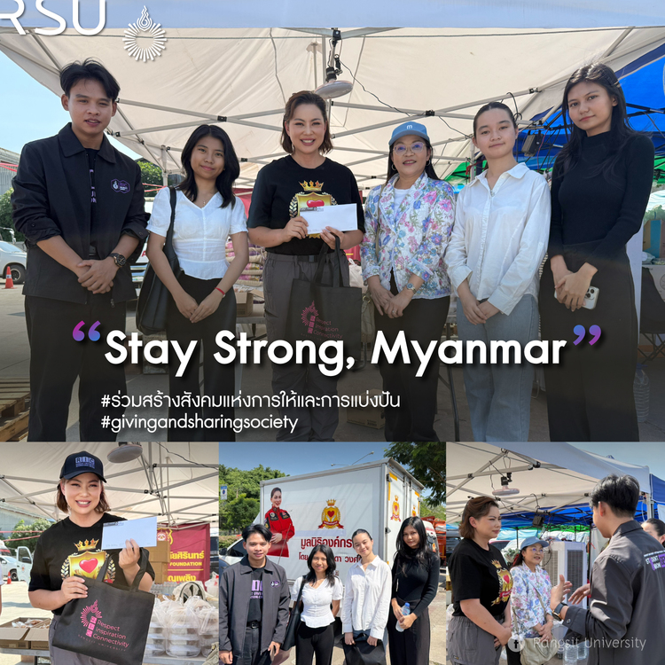 ในช่วงเวลาแห่งความยากลำบากนี้ มหาวิทยาลัยรังสิต ขอแสดงความเสียใจอย่างสุดซึ้งต่อประชาชนชาวเมียนมา และประเทศไทย ที่ได้รับผลกระทบจากเหตุการณ์แผ่นดินไหวในครั้งนี้ เราขอส่งกำลังใจและความห่วงใยไปยังผู้ประสบภัย ครอบครัวของผู้สูญเสีย และทุกคนที่ได้รับผลกระทบจากเหตุการณ์อันน่าสลดใจนี้ ขอเป็นกำลังใจและยืนหยัดเคียงข้างทุกท่าน พร้อมร่วมเป็นส่วนหนึ่งในการสนับสนุนการฟื้นฟูและเสริมสร้างความเข้มแข็งเพื่อก้าวผ่านวิกฤตนี้ไปด้วยกัน โดยได้เปิดรับบริจาคเพื่อช่วยเหลือผู้ประสบภัย