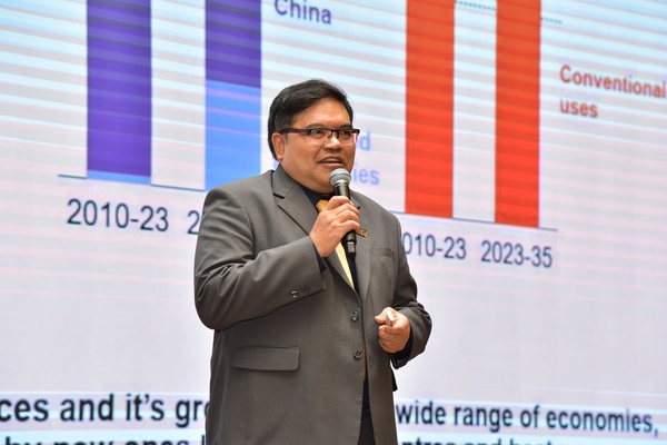 คุณวฤต รัตนชื่น ผู้ช่วยผู้ว่าการวิจัย นวัตกรรม และพัฒนาธุรกิจ การไฟฟ้าฝ่ายผลิตแห่งประเทศไทย (กฟผ.) นำเสนอการก้าวสู่สังคมคาร์บอนต่ำ ผ่านการพัฒนาเทคโนโลยีพลังงานสะอาด เช่น ระบบโครงข่ายไฟฟ้าอัจฉริยะ เทคโนโลยีจัดเก็บพลังงาน และระบบ AI เพื่อบริหารจัดการพลังงาน โดยเน้นย้ำถึงความร่วมมือกับมหาวิทยาลัยในด้านการวิจัยและพัฒนาแหล่งพลังงานหมุนเวียน เช่น โซลาร์เซลล์ พลังงานลม และไฮโดรเจน ทั้งยังมีการนำเสนอแนวทางการปรับเปลี่ยนองค์กรสู่ยุคดิจิทัล โดย คุณนพัตธร จิตรวิโรจน์ กรรมการผู้จัดการ บริษัท ทาวัต เมเนจเม้นท์ จำกัด ซึ่งเน้นการใช้เทคโนโลยีในการยกระดับประสิทธิภาพการผลิตและเพิ่มขีดความสามารถในการแข่งขันของภาคอุตสาหกรรมอย่างเป็นรูปธรรม โดยช่วงท้ายของงานได้มีการเปิดเวทีแลกเปลี่ยนความคิดเห็น เพื่อเสริมความเข้าใจเชิงลึกเกี่ยวกับแนวทางการพัฒนาโครงการวิจัยที่สามารถต่อยอดสู่การใช้ประโยชน์จริง และเข้าถึงแหล่งทุนได้อย่างมีประสิทธิภาพ.