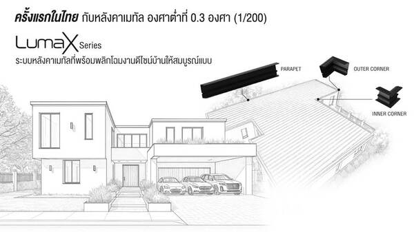 ระบบหลังคา LumaX Series จาก SCG จึงถูกพัฒนาขึ้นเพื่อตอบโจทย์งานดีไซน์ยุคใหม่ ด้วยจุดเด่นที่ สามารถติดตั้งหลังคาในมุมลาดเอียงต่ำได้ถึง 0.3 องศา โดยไม่ต้องหาวัสดุอื่นซ่อนหลังคาและเสี่ยงมีปัญหารั่วซึมภายหลัง อีกทั้งช่วยให้สามารถออกแบบฝ้าได้เท่ากันทั้งหน้าบ้านและหลังบ้าน สร้างเส้นสายที่ต่อเนื่องและเรียบหรูได้อย่างลงตัว อีกทั้งยังผลิตจาก เหล็กหนาพิเศษ 0.65 มม. เสริมด้วย เทคโนโลยีเฉพาะจาก SCG – NoiseShield ที่ช่วยลดเสียงรบกวนจากฝนตก เพื่อความเงียบสงบในการอยู่อาศัย