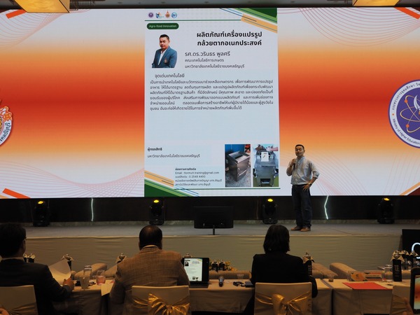ผลิตภัณฑ์เครื่องแปรรูปกล้วยตากอเนกประสงค์ โดย รศ.ดร.วรินธร พูลศรี จากคณะเทคโนโลยีการเกษตร มหาวิทยาลัยเทคโนโลยีราชมงคลธัญบุรี (มทร.ธัญบุรี) คว้ารางวัลดีเด่นจากเวที “RMUTT IP & Business Matching พลิกไอเดียสู่ตลาด สร้างโอกาสสู่อนาคต” ซึ่งจัดขึ้นเพื่อเปิดโอกาสให้นักวิจัยนำเสนอผลงานนวัตกรรมที่สามารถต่อยอดสู่เชิงพาณิชย์ได้อย่างมีประสิทธิภาพ ในปีนี้มีผลงานเข้าร่วมเวที Pitching ทั้งสิ้น 17 ผลงาน โดยเครื่องแปรรูปกล้วยตากอเนกประสงค์ได้รางวัลที่ 1 ระดับดีเด่น พร้อมเงินรางวัลมูลค่า 10,000 บาท