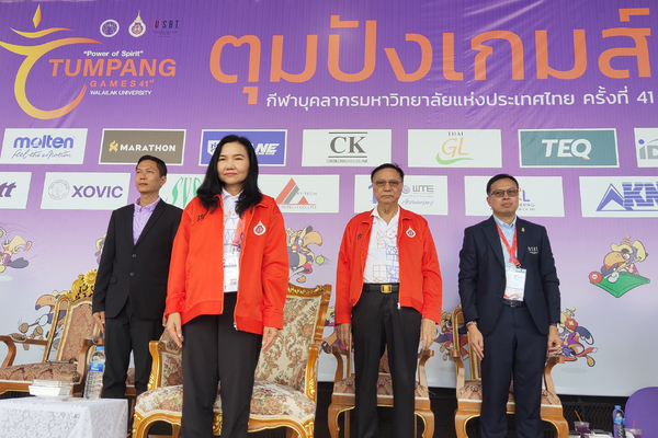 ช่วงเย็นของวันที่ 3 พ.ค.’68 ที่ผ่านมา นางสาววราภรณ์ รุ่งตระการ รองปลัดกระทรวงการอุดมศึกษา วิทยาศาสตร์ วิจัยและนวัตกรรม (อว.) เป็นประธานในพิธีเปิดการแข่งขันกีฬาบุคลากรมหาวิทยาลัยแห่งประเทศไทยครั้งที่ 41 “ตุมปังเกมส์” โดยมี ศาสตราจารย์ ดร.สมบัติ ธำรงธัญวงศ์ อธิการบดีมหาวิทยาลัยวลัยลักษณ์ พร้อมด้วย นายวิทยา เขียวรอด รองผู้ว่าราชการจังหวัดนครศรีธรรมราช รองศาสตราจารย์ ดร.ชูสิทธิ์ ประดับเพ็ชร์ ประธานคณะกรรมการบริหารกีฬามหาวิทยาลัยแห่งประเทศไทย (กกมท.) รองศาสตราจารย์ ดร.ชาญชัย สุขสุวรรณ์ ประธานอนุกรรมการฝ่ายส่งเสริมกีฬาเพื่อความเป็นเลิศ กกมท. ทัพนักกีฬาและเจ้าหน้าที่ จาก 59 สถาบันทั่วประเทศ เข้าร่วมพิธี ณ สนามกีฬากลางตุมปัง มหาวิทยาลัยวลัยลักษณ์ อำเภอท่าศาลา จังหวัดนครศรีธรรมราช
