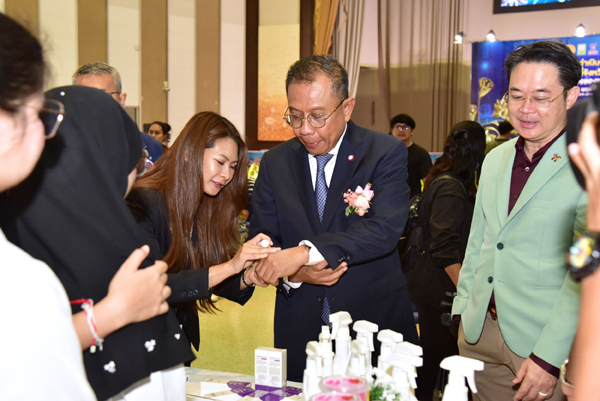 บรรยากาศภายในงานเต็มไปด้วยความคึกคัก มีการจัดแสดงนิทรรศการจากหลากหลายหน่วยงานกว่า 30 บูธ อาทิ ผลิตภัณฑ์ที่ได้รับการพัฒนาและยกระดับด้วย อววน. จาก มทร.ธัญบุรี เครือข่ายผู้ประกอบการ วิสาหกิจชุมชน SME ภาคเอกชน และหน่วยงานในสังกัด อว. รวมถึงการแสดงผลงานวิจัยระดับนานาชาติที่ได้รับรางวัล ผลงานที่ได้รับการจดอนุสิทธิบัตรและสิทธิบัตร (IP) ผลงาน Innovative Start Up ภายใต้ UBI RMUTT และ “Local Life Market – ตลาดวิถีไทย ใจกลางวิทยาศาสตร์” ซึ่งเป็นผลจากการถ่ายทอดเทคโนโลยีสู่ชุมชน นอกจากนี้ ยังมีกิจกรรมตรวจสุขภาพเคลื่อนที่จากศูนย์ความเป็นเลิศด้าน Human and Business Development การนำเสนอผลงานการพัฒนา “ดอกบัว” อัตลักษณ์ของจังหวัดปทุมธานี ตั้งแต่ต้นน้ำจนถึงปลายน้ำ จาก ม.ราชภัฏวไลยอลงกรณ์ในพระบรมราชูปถัมภ์ นิทรรศการจากเครือข่ายคลินิกเทคโนโลยี ม.ธรรมศาสตร์ และนิทรรศการจาก วว./NIA/สทน. และภาคเอกชนด้าน Wellness อย่าง บริษัท TnK Beauty จำกัด และ IMI Wellness Clinic ที่มาสาธิตการฝังเข็มแพทย์แผนจีน