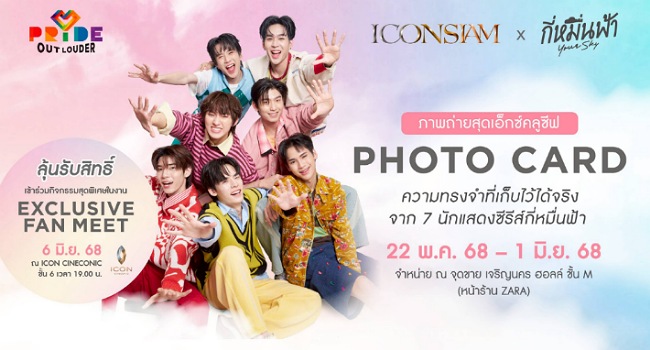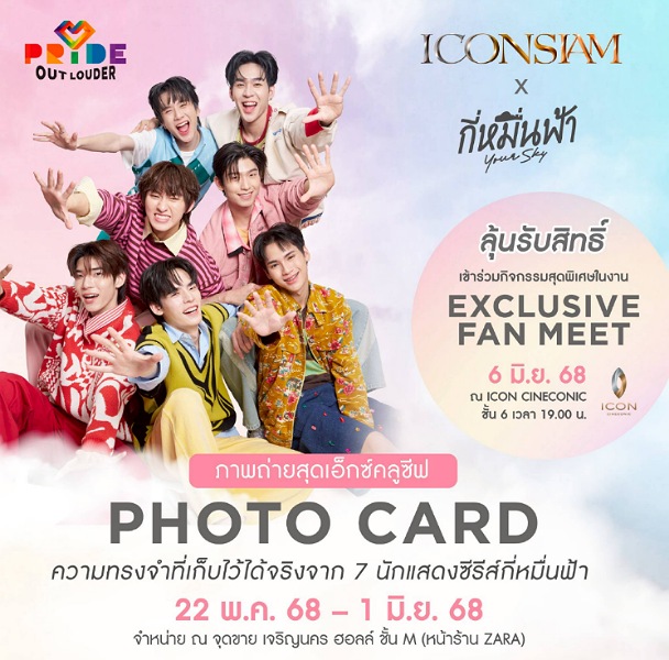 หนึ่งในไฮไลต์ของแคมเปญ ICONSIAM PRIDE OUT LOUDER 2025 คือการร่วมผลักดันกระแสซีรีส์ Y วัฒนธรรมใหม่ที่กำลังได้รับความสนใจจากทั่วโลก จนกลายเป็น Soft Power ไทยที่สร้างปรากฏการณ์ใหม่ให้กับวงการบันเทิงในระดับสากล โดยไอคอนสยามร่วมกับ ซีรีส์ “กี่หมื่นฟ้า” ซีรีส์บอยเลิฟจากค่าย Mandee Work (มันดีเวิร์ค) ที่ได้รับความนิยมอย่างล้นหลาม ครั้งแรกกับการจับมือทำ Special Card Box Set ให้แฟน ๆ ได้สะสม พร้อมจัด Exclusive Fan Meet พบกับโชว์สุดเซอร์ไพรส์จาก 7 นักแสดง โทมัส-ธีร์ทัศน์ จึงมณีรัตน์, ก้อง-ก้องภพ จิโรจน์มนตรี, ตี๋ตี๋-วันพิชิต นิมิตภาคภูมิ, ป๋อ-ศุภการ จิรโชติกุล, อู่อู๋-ธนภูมิ เศรษฐสิทธิกุล, เซฟ-วรพงษ์ วาเลาะ และ แพทจิ-จิรชาติ บุษปวนิช พบกับสิทธิพิเศษ HI-BYE แบบใกล้ชิด กิจกรรมแจกลายเซ็นบนกล่อง Special Card Box Set ถ่ายภาพกรุ๊ปช็อตกับนักแสดงทั้ง 7 ลุ้นเป็น Lucky Fan ร่วมสนุกบนเวที และลุ้นของรางวัลสุดพิเศษ ในวันที่ 6 มิถุนายน 2568 ณ โรงภาพยนตร์ ICON CINECONIC ไอคอนสยาม ชั้น 6 โดยแฟน ๆ สามารถรับสิทธิ์เข้าร่วมงาน Exclusive Fan Meet “กี่หมื่นฟ้า” ได้ 2 วิธี ดังนี้