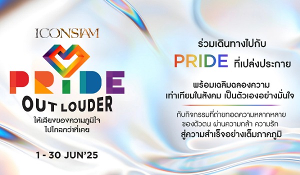 ไอคอนสยาม แลนด์มาร์กระดับโลกริมแม่น้ำเจ้าพระยา เปิดพื้นที่ต้อนรับความหลากหลายอย่างภาคภูมิ ร่วมเฉลิมฉลองเดือนแห่ง Pride กับแคมเปญ “ICONSIAM PRIDE OUT LOUDER 2025” ที่ยกระดับพลัง Pride ของไทยให้ดังกึกก้องไปทั่วโลกตลอดเดือนมิถุนายน 2568 ภายในแคมเปญ เต็มไปด้วยกิจกรรมที่สะท้อนความหลากหลายและส่งเสริมความเท่าเทียมในทุกมิติ ทั้งการนำเสนอเรื่องราวประวัติศาสตร์ Pride ในประเทศไทย และถ่ายทอดแรงบันดาลใจจาก The Pride Successors ที่ใช้ความเป็นตัวตนเป็นแรงบันดาลใจจนประสบความสำเร็จ พร้อมเปิดพื้นที่ Pride Out Wall ให้ทุกคนร่วมส่งเสียงถึงอนาคต ไอคอนสยามยังชวนทุกคนช็อปเพลินกับสินค้าสุด Pride จากแบรนด์ดังมากมาย และพลาดไม่ได้กับไฮไลต์สุดพิเศษ! จับมือกับซีรีส์ “กี่หมื่นฟ้า” นำเสนอความทรงจำที่เก็บไว้ได้ กับ Photo Card คอลเลกชันพิเศษครั้งแรก พร้อมจัด Exclusive Fan Meet กับ 7 นักแสดงนำขวัญใจชาว Y เพื่อร่วมเฉลิมฉลองความกล้าที่จะเป็นตัวเองในทุกรูปแบบ…ผ่านเสียงแห่ง Pride ที่จะดังกึกก้องกว่าที่เคย