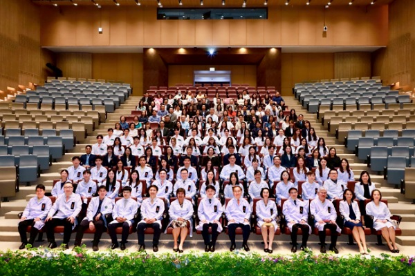 ทั้งนี้ “พิธีมอบเสื้อกาวน์และปฎิญาณตน” จัดขึ้นเพื่อนักศึกษาแพทย์ที่กำลังจะเริ่มต้นเรียนรู้ในระดับคลินิก ณ โรงพยาบาลนครปฐม โรงพยาบาลเพชรบูรณ์ และ โรงพยาบาลจุฬาภรณ์ ได้เตรียมความพร้อมสำหรับการเรียนรู้การทำงานในสภาพแวดล้อมทางคลินิก เพื่อการเติบโตเป็นแพทย์ที่มีคุณภาพและมีจริยธรรม นักศึกษาแพทย์ทุกคนได้ผ่านการเรียนรู้ในระดับเตรียมความพร้อมของความเป็นแพทย์ ช่วง Early Years ตลอดจนการปฏิบัติงานวิจัย ณ University College London มาแล้วเป็นเวลากว่า 4 ปี จึงถือเป็นอีกหนึ่งก้าวสำคัญในการเปลี่ยนผ่าน จากการเรียนในชั้นเรียนและห้องปฏิบัติการ สู่การเรียนรู้จากผู้ป่วยจริง ซึ่งจะกลายเป็น “อาจารย์” คนสำคัญของนักศึกษาต่อจากนี้ไป ซึ่งจะมีการเตรียมความพร้อมในการเปลี่ยนผ่านจากการเรียนในชั้น Early Years ไปสู่การเรียนรู้ในสภาพแวดล้อมทางคลินิกที่มีความซับซ้อน ต้องมีการประยุกต์ใช้ความรู้ให้เข้ากับบริบททางการแพทย์ รวมถึงการใช้ทักษะการสื่อสาร ทักษะการคิดวิพากษ์ (Critical Thinking) การประเมินสถานการณ์และการตัดสินใจ การปฏิบัติต่อผู้ป่วยอย่างมีคุณภาพและมีจริยธรรม โดยการฝึกฝนทักษะพื้นฐานทางคลินิก การสังเกต การสื่อสารและการวินิจฉัย เป็นสิ่งสำคัญสำหรับการดูแลผู้ป่วยอย่างเป็นองค์รวม นอกจากนี้แล้วยังช่วยให้นักศึกษาแพทย์เข้าใจวัฒนธรรมองค์กร การทำงานระหว่างเพื่อนร่วมงาน บุคลากรสหวิชาชีพ เข้าใจหลักจริยธรรมและจรรยาบรรณของแพทย์ รวมถึงทราบถึงวิธีการวัดและประเมินผลในชั้น Later Years ด้วย
