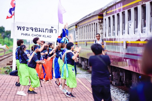 กิจกรรมในช่วงเช้าเริ่มต้นอย่างคึกคักด้วยการรับน้องรถไฟ ณ สถานีหัวลำโพง มีนักศึกษาใหม่กว่า 700 คนร่วมเดินทางโดยขบวนรถไฟพิเศษไปยังสถานีพระจอมเกล้า พร้อมกิจกรรมสันทนาการตลอดเส้นทาง เพื่อสร้างสายสัมพันธ์ระหว่างผู้บริหาร คณาจารย์ รุ่นพี่และรุ่นน้องในบรรยากาศที่อบอุ่น สนุกสนาน และน่าจดจำ เมื่อวันศุกร์ที่ 27 มิถุนายน 2568 โดยขบวนรถไฟออกจากสถานีเวลา 08.00 น. ถึงสถานีพระจอมเกล้าเวลา 09.00 น. โดยมีผู้บริหาร คณาจารย์ รุ่นพี่ไปยืนรอต้อนรับเข้าสู่สถาบันอย่างอบอุ่น
