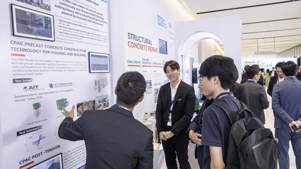 สำหรับภายในงานยังมีการจัดบูธนิทรรศการร่วมนำเสนอนวัตกรรมคอนกรีตกำลังอัดสูง ซีแพค และเทคโนโลยี สำหรับงานซ่อม เสริมกำลัง จาก CPAC SB&M Lifetime Solution ผ่านความร่วมมือกับพันธมิตรญี่ปุ่น Shobond & Mitsui Infrastructure Maintenance Corporation หรือ SB&M ผู้เชี่ยวชาญด้านการซ่อมแซมเชิงลึกที่มีประสบการณ์กว่า 60 ปี ทั้งด้านเทคโนโลยี วัสดุศาสตร์ และการพัฒนานวัตกรรมซ่อมแซมโดยเฉพาะสำหรับสภาพแวดล้อมในภูมิภาคอาเซียนแสดงถึงศักยภาพผู้นำด้านเทคโนโลยีคอนกรีตและความพร้อมในการเป็นผู้ให้บริการโซลูชันด้านการซ่อมแซมและบำรุงรักษาโครงสร้างแบบครบวงจรที่รองรับปัญหาด้านภัยพิบัติ