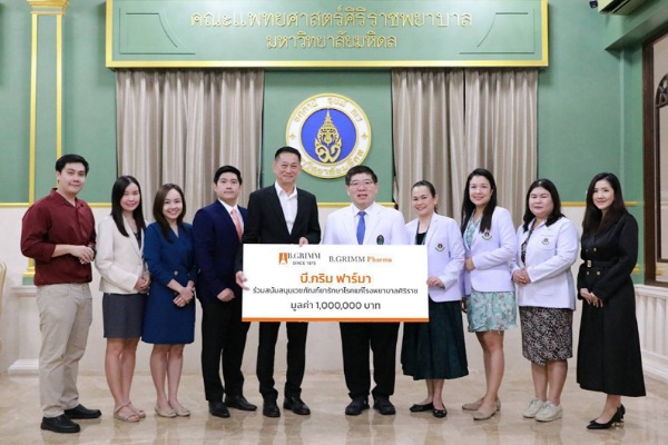 บี.กริม ฟาร์มา นำโดยคุณปัญญา กิจเจริญกันกุล รองกรรมการผู้จัดการใหญ่ และคณะผู้บริหาร บี.กริม ฟาร์มา ร่วมส่งมอบยามูลค่า 1,000,000 บาท ให้แก่โรงพยาบาลศิริราช เพื่อสนับสนุนการรักษาผู้ป่วยโรคระบบทางเดินหายใจ โดยมี ศ.นพ.ยงยุทธ ศิริวัฒนาพฤกษ์ ผู้อำนวยการโรงพยาบาลศิริราช ให้เกียรติเป็นผู้รับมอบ การสนับสนุนในครั้งนี้เป็นส่วนหนึ่งของความมุ่งมั่นของบี.กริม ฟาร์มา ในการส่งเสริมให้ประชาชนเข้าถึงผลิตภัณฑ์คุณภาพสูง สนับสนุนระบบสาธารณสุขไทย พร้อมยกระดับสุขภาพและคุณภาพชีวิตของผู้คนในสังคม