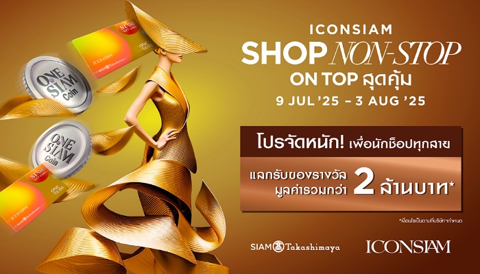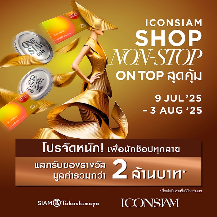 ไอคอนสยาม จัดโปรแรง เติมเต็มทุกการช็อป“ICONSIAM SHOP NON-STOP ON TOP สุดคุ้ม”รับสิทธิพิเศษรวมมูลค่ากว่า 2 ล้านบาท!ตั้งแต่วันที่ 9 กรกฎาคม 2568 – 3 สิงหาคม 2568
