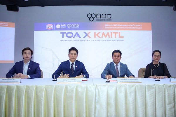 คณะสถาปัตยกรรม ศิลปะและการออกแบบ สถาบันเทคโนโลยีพระจอมเกล้าเจ้าคุณทหารลาดกระบัง (AAD KMITL) ร่วมกับ บริษัท ทีโอเอ เพ้นท์ (ประเทศไทย) จำกัด (มหาชน) ลงนามบันทึกข้อตกลงความร่วมมือทางวิชาการ (MOU) ครั้งสำคัญ ผลักดันโครงการความร่วมมือสร้างนักสร้างสรรค์แห่งอนาคต เพื่อยกระดับการเรียนรู้และบ่มเพาะนักออกแบบรุ่นใหม่