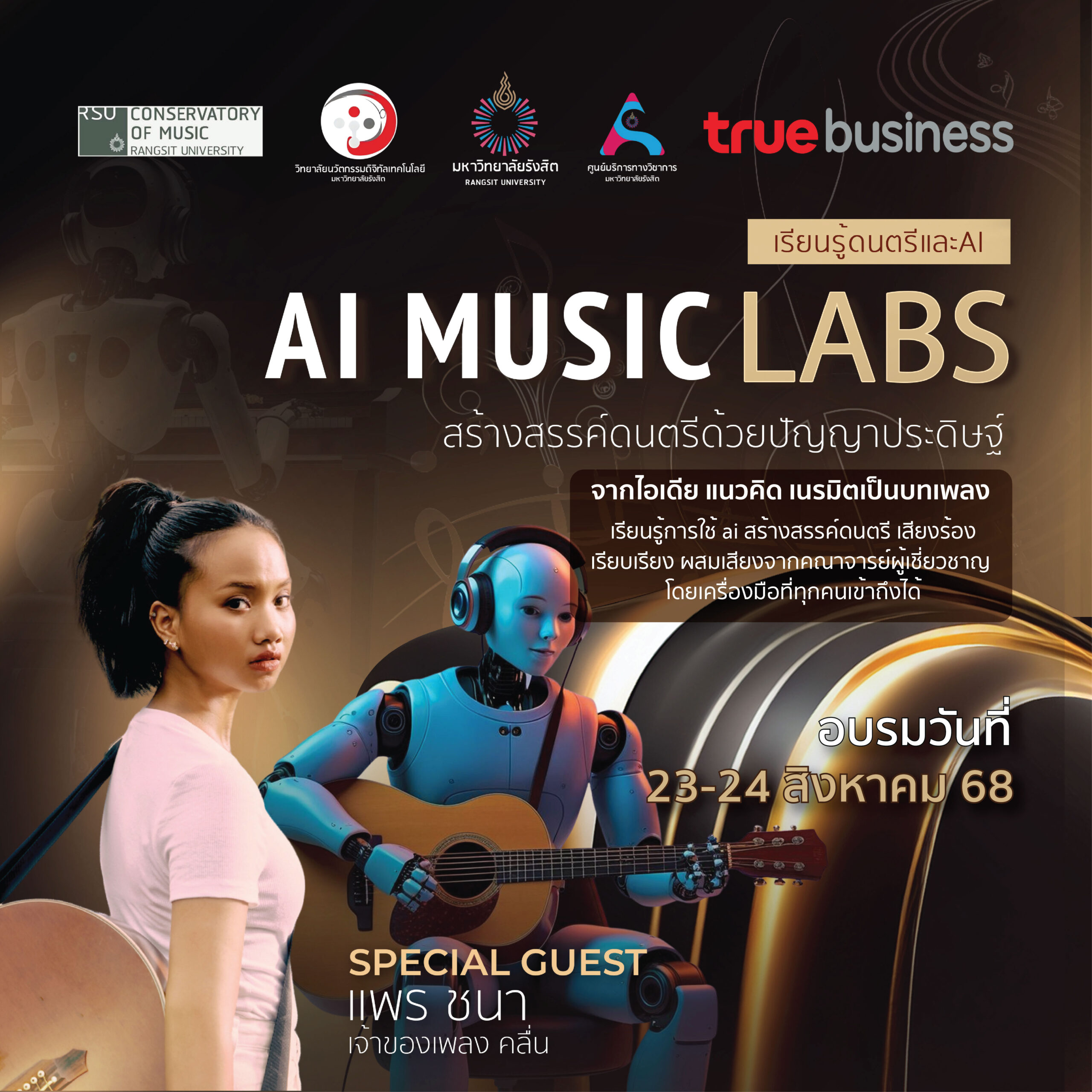 ศูนย์บริการทางวิชาการ มหาวิทยาลัยรังสิต เปิดรับสมัครบุคคลทั่วไป และผู้ที่สนใจ เข้าร่วมอบรมคอร์สพิเศษ “AI MUSIC LABS” สร้างสรรค์เสียงด้วยปัญญาประดิษฐ์ เปิดประสบการณ์ใหม่ในการสร้างสรรค์เสียงเพลง หัวข้อการอบรมเน้นเรียนรู้ดนตรีและ AI อย่างถูกวิธีตามหลักทางดนตรี จากไอเดียเล็กๆ สู่บทเพลง เรียนรู้วิธีใช้ AI เปลี่ยนจินตนาการให้กลายเป็นเสียงดนดรี แต่งเนื้อร้อง จัดเรียงเสียง ผสมผสานอารมณ์ ด้วยเครื่องมือสร้างสรรค์ที่ทุกคนเข้าถึงได้ โดยผู้เชี่ยวชาญ อาทิ ผศ.ดร.ธรรณพ อารีพรรค ผู้เชี่ยวชาญด้าน AI อาจารย์จากวิทยาลัยนวัตกรรมดิจิทัลเทคโนโลยี ผศ.บุญรัตน์ ศิริรัตนพันธ ผศ.ดร.พลังพล ทรงไพบูลย์ อาจารย์ประดิษฐ์ แสงไกร อาจารย์วีนภัทร์ อึ้งอัมพร อาจารย์แมนสรวง สุรางครัตน์ อาจารย์ชาคร คุระทอง นักแต่งเพลง นักดนตรี และอาจารย์ผู้เชี่ยวชาญจากวิทยาลัยดนตรี และศิลปินรับเชิญ แพร ชนา เจ้าของเพลงคลื่น ที่มียอดวิวกว่า 100 ล้านวิวเปิดอบรมระหว่างวันที่ 23 – 24 สิงหาคม 2568 ณ วิทยาลัยดนตรี มหาวิทยาลัยรังสิต