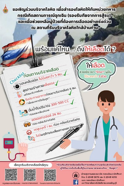 นอกจากนี้ มทร.ธัญบุรี ยังให้ความสำคัญในการสำรองโลหิตเพื่อช่วยเหลือผู้ได้รับบาดเจ็บจากสถานการณ์ชายแดน โดยได้เชิญชวนนักศึกษา บุคลากร และประชาชนทั่วไป ร่วมบริจาคโลหิตเพื่อสนับสนุนการรักษาทั้งทหารและประชาชนที่ได้รับผลกระทบ