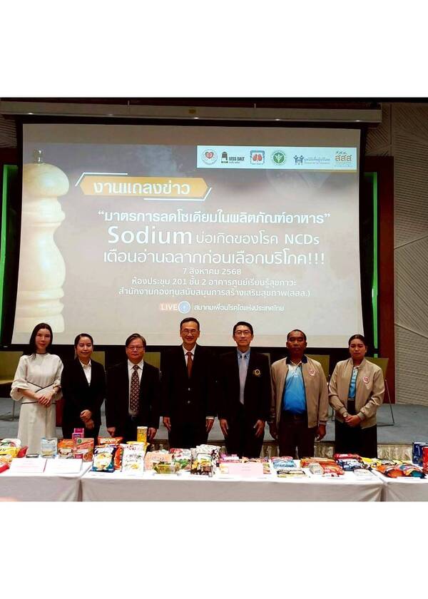 สมาคมเพื่อนโรคไตแห่งประเทศไทย : นายกสมาคมเพื่อนโรคไตแห่งประเทศไทย ร่วมกับเครือข่ายลดบริโภคเค็ม สมาคมโรคไตแห่งประเทศไทย มูลนิธิเพื่อผู้บริโภค กระทรวงสาธารณสุข และสำนักงานกองทุนสนับสนุนการสร้างเสริมสุขภาพ (สสส.) ภายใต้โครงการสำรวจข้อมูลโภชนาการในผลิตภัณฑ์อาหาร 2567 สุ่มสำรวจอ่านฉลากค่าโซเดียมกลุ่มขนมขบเคี้ยว จำนวน จำนวน 352 ตัวอย่าง กลุ่มอาหารแช่เย็น แช่แข็งสำหรับอุ่นร้อนพร้อมรับประทาน จำนวน 60 ตัวอย่าง และกลุ่มอาหารสำเร็จรูป (อาหารพร้อมบริโภคและอาหารกระป๋อง) จำนวน 48 ตัวอย่าง ได้จัดแถลงข่าวมาตรการลดโซเดียมในผลิตภัณฑ์อาหาร สถานการณ์และผลสุ่มสำรวจโซเดียม กลุ่มขนมขบเคี้ยว กลุ่มอาหารแช่เย็น-แช่แข็ง และกลุ่มอาหารสำเร็จรูป ปี 2568 เพื่อให้ผู้บริโภครู้เท่าทันการอ่านฉลากและเตือนภัยใกล้ตัว Sodium คือบ่อเกิดของโรค NCDs เตือนอ่านฉลากก่อนเลือกบริโภค โดยมีวัตถุประสงค์ 1. เพื่อสร้างความตระหนักรู้ความเข้าใจเกี่ยวกับการดูฉลากอาหารและการบริโภคอาหารที่ปลอดภัยต่อสุขภาพ 2. เพื่อรณรงค์ให้เกิดการแก้ไขกฎหมายหรือข้อบังคับเกี่ยวกับการลดปริมาณโซเดียมในอาหาร 3. เพื่อสนับสนุนให้เกิดมาตรการของรัฐเกี่ยวกับการเก็บภาษีโซเดียม เน้นสร้างแรงจูงใจในการปรับสูตรอาหารในทางธุรกิจ 4. เพื่อสำรวจการแสดงข้อมูลโภชนาการและปริมาณโซเดียมบนฉลากอาหารของเครื่องปรุงรส อาหารกึ่งสำเร็จรูป ขนมขบเคี้ยว และประชาสัมพันธ์ให้ประชาชนทราบ