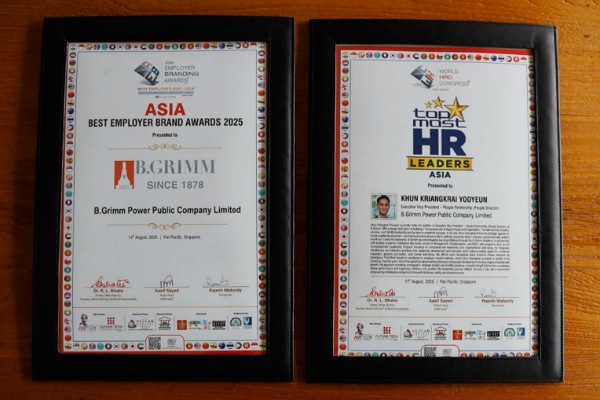 บี.กริม เพาเวอร์ จำกัด (มหาชน) สร้างชื่อเสียงในระดับนานาชาติอีกครั้ง ด้วยการคว้ารางวัลอันทรงเกียรติ “Asia Best Employer Branding 2025” และ “Asia Top Most HR Leader” จากการพิจารณาและมอบรางวัลโดยกรรมการผู้ทรงคุณวุฒิจากสถาบัน World HRD Congress ณ ประเทศสิงคโปร์ ซึ่งเป็นงานประชุมด้านทรัพยากรบุคคลจากองค์กรชั้นนำและผู้นำจากหลากหลายประเทศ โดย คุณเกรียงไกร อยู่ยืน รองกรรมการผู้จัดการใหญ่สายงานทรัพยากรบุคคล เป็นตัวแทนเข้ารับมอบรางวัล ดังกล่าว