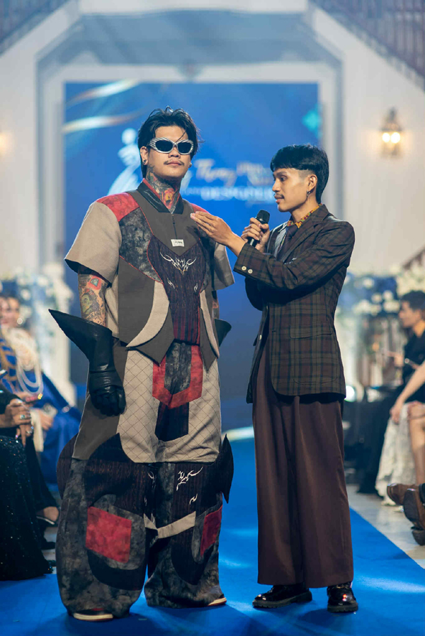 “แนวคิด แรงบันดาลใจ ได้รับจาก ‘ช้างไทย’ ซึ่งเป็นสัตว์ที่มีความผูกพันกับคนไทยมาอย่างยาวนาน ทั้งในด้านประวัติศาสตร์และวัฒนธรรม และเริ่มต้นจากการวิเคราะห์โจทย์ ออกแบบลวดลาย เลือกวัสดุที่เหมาะสม ลงมือสร้างสรรค์ และปรับแก้จนได้ผลงานที่สมบูรณ์แบบ จุดเด่นของชุดนี้คือการนำเสนอภาพลักษณ์ใหม่ของผ้าไทยผ่านนายแบบผู้ชายพลัสไซส์ที่มีรอยสัก เพื่อสื่อสารว่าผ้าไทยสามารถเข้าถึงได้หลายกลุ่มคน และนำมาใช้ได้จริงในชีวิตประจำวันได้อย่างมีสไตล์ โดยเน้นแนวตรีทแฟชั่นที่ตอบโจทย์คนรุ่นใหม่ ซึ่งเป็นการส่งเสริมการบริโภคที่ยั่งยืน”