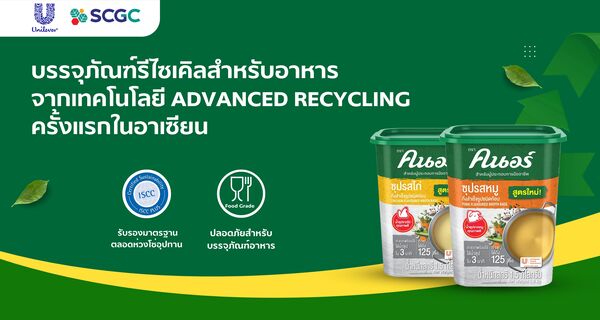 กลุ่มบริษัท ยูนิลีเวอร์ ประเทศไทย หรือ Unilever ผู้ผลิตสินค้าอุปโภคบริโภครายใหญ่ระดับโลก ร่วมกับ เอสซีจี เคมิคอลส์ หรือ SCGC ผู้นำธุรกิจพอลิเมอร์และโซลูชันครบวงจรเพื่อความยั่งยืน เปิดตัวบรรจุภัณฑ์รีไซเคิล แบรนด์ “คนอร์ สำหรับผู้ประกอบการมืออาชีพ” (Knorr Professional) ครั้งแรกในอาเซียน โดยพัฒนาบรรจุภัณฑ์รีไซเคิลชนิดฟู้ดเกรด (Food Grade) หรือ เกรดอาหารปลอดภัย ด้วยเทคโนโลยีรีไซเคิลขั้นสูง หรือ Advanced Recycling จาก SCGC GREEN POLYMERTM สามารถเปลี่ยนพลาสติกใช้แล้วให้เป็นวัตถุดิบตั้งต้น (Circular Naphtha) โดยนำมาผลิตเป็นเม็ดพลาสติกใหม่ (Certified Circular Polyolefin Resin) ซึ่งมีคุณสมบัติเทียบเท่าเม็ดพลาสติกทั่วไป ผ่านการรับรองมาตรฐาน ISCC PLUS ครอบคลุมตลอดห่วงโซ่อุปทาน รายแรกของอุตสาหกรรมปิโตรเคมีในประเทศไทย จึงสามารถใช้ผลิตบรรจุภัณฑ์อาหารได้อย่างปลอดภัย ไม่มีสารเคมีหรือสารตกค้างที่อาจก่อให้เกิดอันตรายต่อร่างกาย หรือปนเปื้อนในอาหาร ถือเป็นบรรจุภัณฑ์อาหารจากกระบวนการรีไซเคิลขั้นสูงครั้งแรกในอาเซียน ซึ่งขณะนี้ ยูนิลีเวอร์ได้วางจำหน่ายผลิตภัณฑ์คนอร์ สำหรับผู้ประกอบการมืออาชีพ ที่ผลิตจากบรรจุภัณฑ์รักษ์โลกในประเทศไทยและเวียดนาม