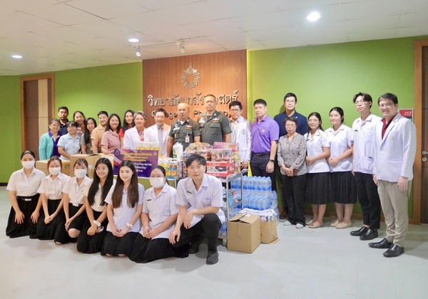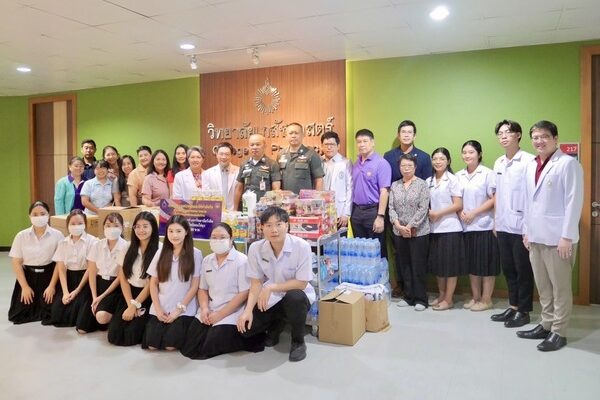 ผู้ช่วยศาสตราจารย์ ดร. เภสัชกรธนภัทร ทรงศักดิ์ คณบดี พร้อมด้วยอาจารย์ บุคลากร และนักศึกษาวิทยาลัยเภสัชศาสตร์ มหาวิทยาลัยรังสิต มอบสเปรย์ตะไคร้หอมไล่ยุง จำนวน 1,500 ขวด และข้าวสาร อาหารแห้ง น้ำดื่ม ให้แก่ พ.ต.อ.ธนพล ท้าวหนู ผกก.ฝอ.2 บก.อก.บช.ตชด และพ.ต.ท.รัฐกร อินทนิล รอง ผกก.ตชด.34 ผู้แทนรับมอบ ณ วิทยาลัยเภสัชศาสตร์ มหาวิทยาลัยรังสิต โดยได้รับการสนับสนุนขวดสเปรย์ ขนาด 500 ml. จากบริษัท กิบไทย จำกัด