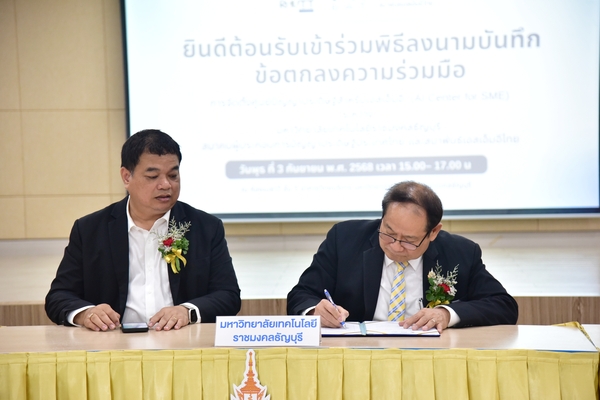 มหาวิทยาลัยเทคโนโลยีราชมงคลธัญบุรี (มทร.ธัญบุรี) ร่วมกับสมาคมผู้ประกอบการปัญญาประดิษฐ์ประเทศไทย (AIEAT) และสมาพันธ์เอสเอ็มอีไทย (The Federation of Thai SME Association) ลงนามบันทึกข้อตกลงความร่วมมือ จัดตั้งศูนย์ปัญญาประดิษฐ์สำหรับเอสเอ็มอี (AI Center for SME) อย่างเป็นทางการ เพื่อผลักดันการใช้เทคโนโลยีปัญญาประดิษฐ์ (AI) ขับเคลื่อนผู้ประกอบการไทยให้สามารถแข่งขันได้ในระดับภูมิภาคและสากล ณ ห้องเมธาวี ชั้น 5 อาคารวิทยบริการ สำนักวิทยบริการและเทคโนโลยีสารสนเทศ มทร.ธัญบุรี