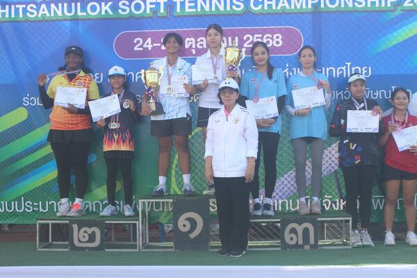 จากนั้นเป็นพิธีมอบเหรียญรางวัลชนะเลิศประเภทต่างๆ โดยได้รับเกียรติจากนายศิริชิน หาญพิทักษ์พงศ์ นายกเทศบาลนครพิษณุโลก , นายวิทยา อ่อนแก้ว รองนายกเทศบาลนครพิษณุโลก , นางอุดมลักษณ์ ศิริกุลเลิศรัฐ นายกสมาคมกีฬาซอฟท์เทนนิสแห่งประเทศไทย, นางสุภาพร นาคนาคา กรรมการบริหารสมาคมฯ และพันตำรวจเอกวรเชษฐ์ พลขันธ์ ที่ปรึกษาชมรมซอฟท์เทนนิสพิษณุโลก ให้เกียรติขึ้นมอบเหรียญรางวัล , ถ้วยรางวัล และประกาศนียบัตรแก่น้องๆนักกีฬาที่ได้รับรางวัลก่อนที่นางอุดมลักษณ์ ศิริกุลเลิศรัฐ นายกสมาคมกีฬาซอฟท์เทนนิสแห่งประเทศไทย จะกล่าวขอบคุณนักกีฬา ผู้ปกครอง , ผู้ตัดสิน และฝ่ายจัดการแข่งขันตลอดจนทุกภาคส่วนของเจ้าภาพจังหวัดพิษณุโลกที่ช่วยกันทำงานรายการนี้จนบรรลุวัตถุประสงค์ พร้อมกล่าวเชิญชวนนักกีฬาให้เข้าร่วมการแข่งขันซอฟท์เทนนิสกีฬาระหว่างโรงเรียน กรมพละศึกษา ในระหว่างวันที่ 29 – 30 พ.ย.68 และอีกหนึ่งรายการใหญ่ในรายการระดับนานาชาติ ระหว่างวันที่ 16 – 21 ธ.ค.68 ทั้งสองรายการแข่งขันที่สนามเทนนิสมหาวิทยาลัยเทคโนโลยีราชมงคลธัญบุรี คลองหก จ.ปทุมธานี นายกสมาคมกล่าวทิ้งท้าย