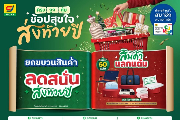 ซีเจ มอร์ (CJ MORE) เดินหน้าส่งต่อความสุขช่วงปลายปีด้วยแคมเปญ “ซีเจ มอร์ ครบ ถูก คุ้ม ช้อปสุขใจ ส่งท้ายปี” ตั้งแต่วันที่ 25 ตุลาคม – 31 ธันวาคม 2568 เพื่อสร้างโมเมนต์แห่งรอยยิ้มให้ลูกค้าสมาชิกสบายการ์ดทุกเพศทุกวัย และทุกคนในครอบครัว ผ่านโปรโมชันสินค้าหมุนเวียนรายสัปดาห์ และสินค้าแลกแต้มสุดคุ้ม ที่ตอบโจทย์ความสุขในทุกมิติ ไม่ว่าจะสุขเมื่อได้ออกเดินทางท่องเที่ยว สุขเมื่อได้กลับบ้านใช้เวลากับคนที่รัก สุขเมื่อได้รวมตัวปาร์ตี้กับเพื่อนฝูง หรือสุขเมื่อได้ให้ของขวัญแก่คนพิเศษ