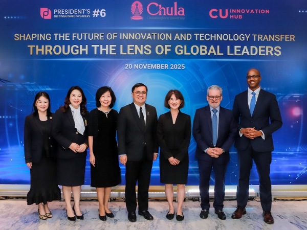 จุฬาลงกรณ์มหาวิทยาลัย ร่วมกับศูนย์กลางนวัตกรรมแห่งจุฬาลงกรณ์มหาวิทยาลัย (CU Innovation Hub) เดินหน้ายกระดับศักยภาพนวัตกรรมและทรัพย์สินทางปัญญาของประเทศ ผ่านการจัดงานเสวนา President’s Distinguished Speaker ครั้งที่ 6 “ก้าวสู่อนาคตของนวัตกรรมและการถ่ายทอดเทคโนโลยีผ่านมุมมองของผู้นำระดับโลก” โดยได้รับเกียรติจาก ศาสตราจารย์ ดร.วิเลิศ ภูริวัชร อธิการบดีจุฬาฯ กล่าวเปิดงาน จากนั้นเป็นการปาฐกถาจากผู้นำระดับโลกด้านทรัพย์สินทางปัญญา นวัตกรรมและการถ่ายทอดเทคโนโลยี คุณ Marco M. Alemán ผู้ช่วยอธิบดีองค์การทรัพย์สินทางปัญญาโลก (WIPO) และคุณ Katharine Ku อดีตผู้อำนวยการฝ่ายบริหารจาก Office of Technology Licensing จาก Stanford University มีคุณอรมน ทรัพย์ทวีธรรม อธิบดีกรมทรัพย์สินทางปัญญา พร้อมด้วยผู้บริหารมหาวิทยาลัย ผู้ทรงคุณวุฒิจากภาครัฐ และผู้บริหารระดับสูงจากภาคเอกชน มาเข้าร่วมเพื่อร่วมยกระดับผลงานวิจัยและทรัพย์สินทางปัญญาไทยสู่ตลาดโลกอย่างคับคั่ง