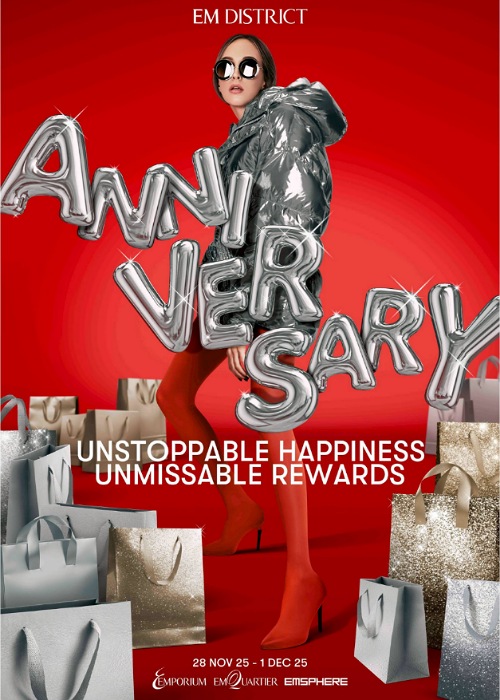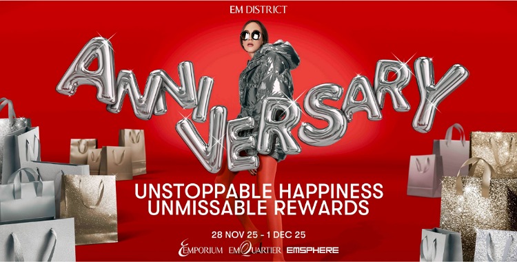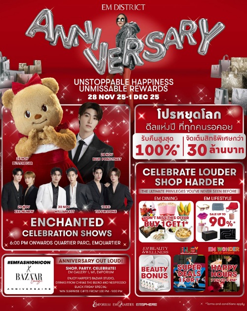 เอ็ม ดิสทริค (เอ็มโพเรียม, เอ็มควอเทียร์, เอ็มสเฟียร์) จับมือกว่า 30 พันธมิตร สร้างปรากฏการณ์ครั้งยิ่งใหญ่จัดงาน EM DISTRICT ANNIVERSARY: UNSTOPPABLE HAPPINESS UNMISSABLE REWARDS และ “EM DISTRICT WINTER WONDERLAND” ระหว่างวันที่ 27 พฤศจิกายน ถึง วันที่ 5 มกราคม 2569 – เฉลิมฉลองครบรอบ 2 ปีแห่งความสำเร็จ ในการเป็นย่านการค้าระดับโลกที่เติมเต็มความสมบูรณ์แบบของกรุงเทพมหานคร สร้างความสุขรับเทศกาลคริสต์มาสและปีใหม่ ด้วยการทุ่มงบประมาณกว่า 200 ล้านบาท จัดอภิมหาแคมเปญโปรโมชั่นมอบของรางวัลรวมกว่า 30 ล้านบาท พร้อมด้วยอีเวนต์สุดยิ่งใหญ่ ตระการตา ยาวนานกว่า 1 เดือนเต็ม ตอกย้ำภาพลักษณ์การเป็นหนึ่งในศูนย์กลางไลฟ์สไตล์ และ ENTERTAINMENT HUB ระดับโลก ที่เป็นเดสทิเนชั่นของนักท่องเที่ยวทั่วโลก